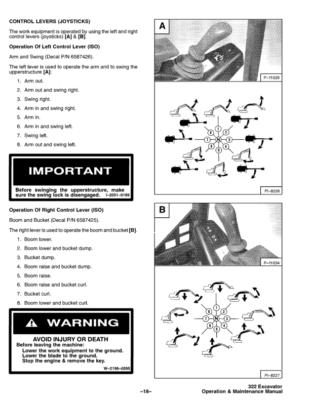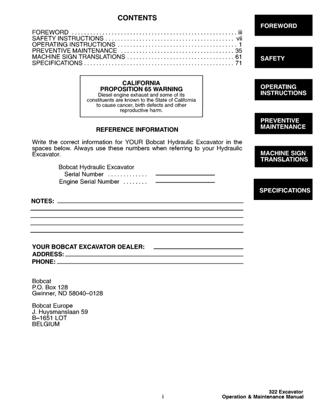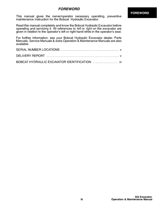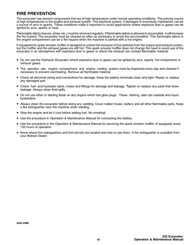 Bobcat 322 Excavator Operation and Maintenance Manual 517811001