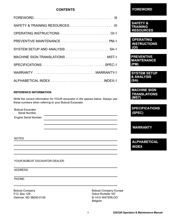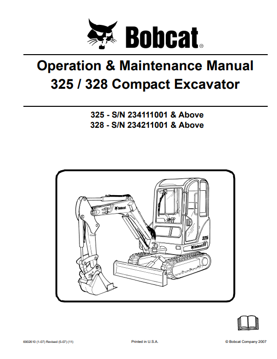 Bobcat 325 – S/N 234111001 & Above