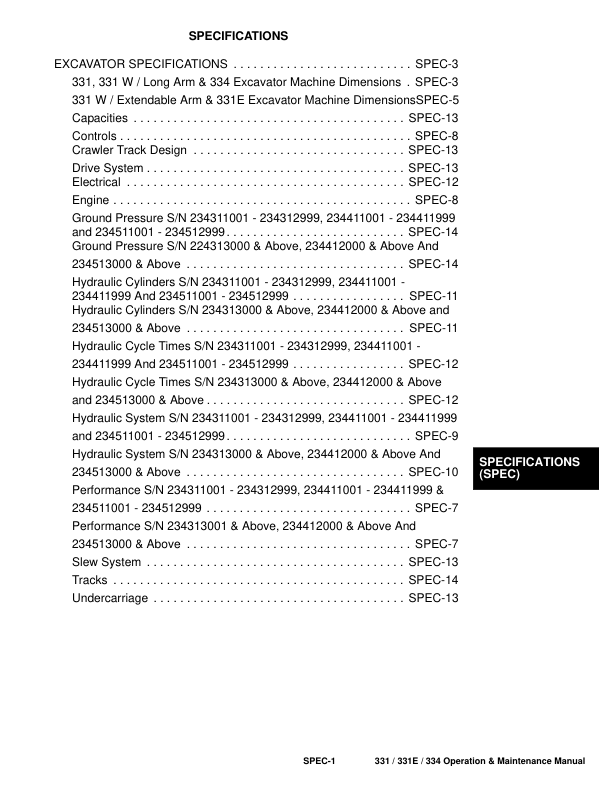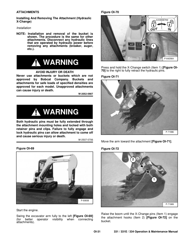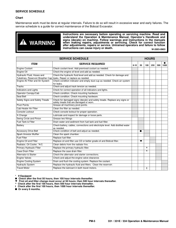 Bobcat 331 331E 334 Excavator Operation and Maintenance Manual 2343 2344 4345