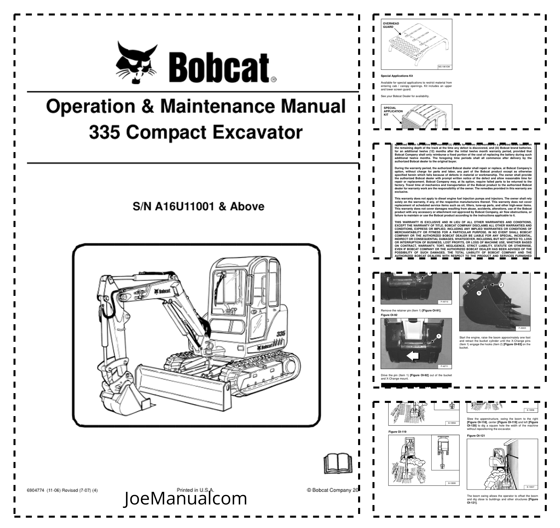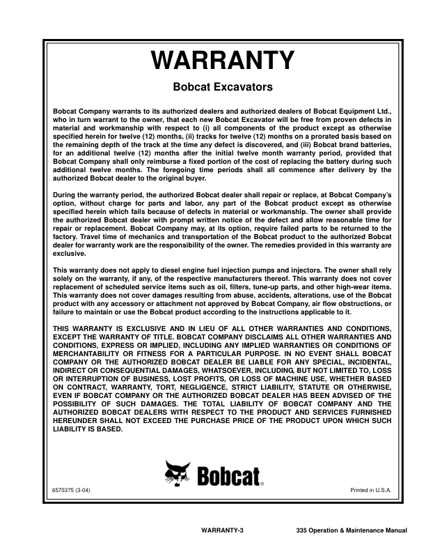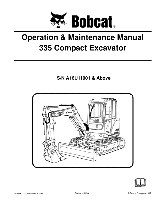Bobcat 335 Excavator Operation and Maintenance Manual A16U11001