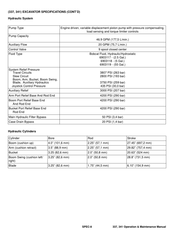 Bobcat 337 341 Excavator Operation and Maintenance Manual 2346 2347