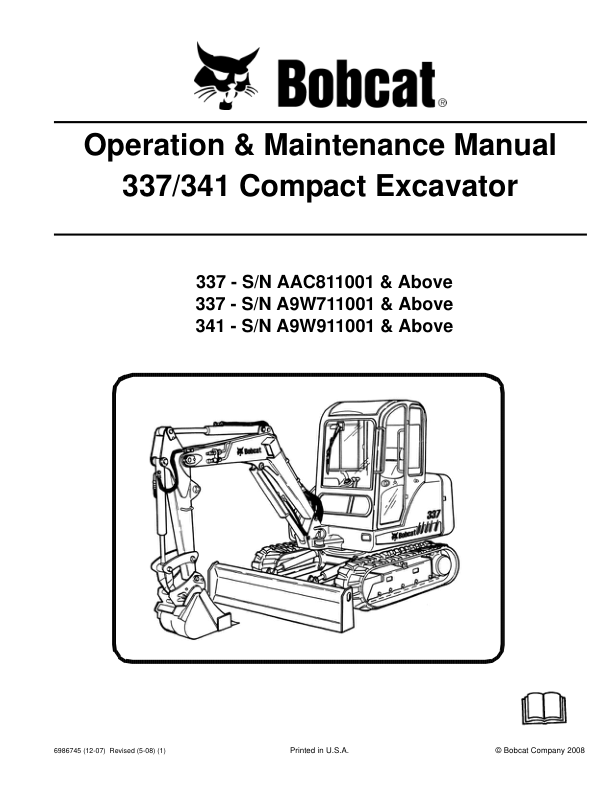 Bobcat 337 341 Excavator Operation and Maintenance Manual AAC9 A9W7 A9W9