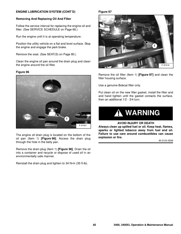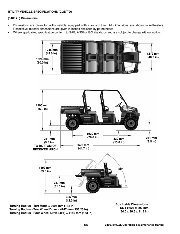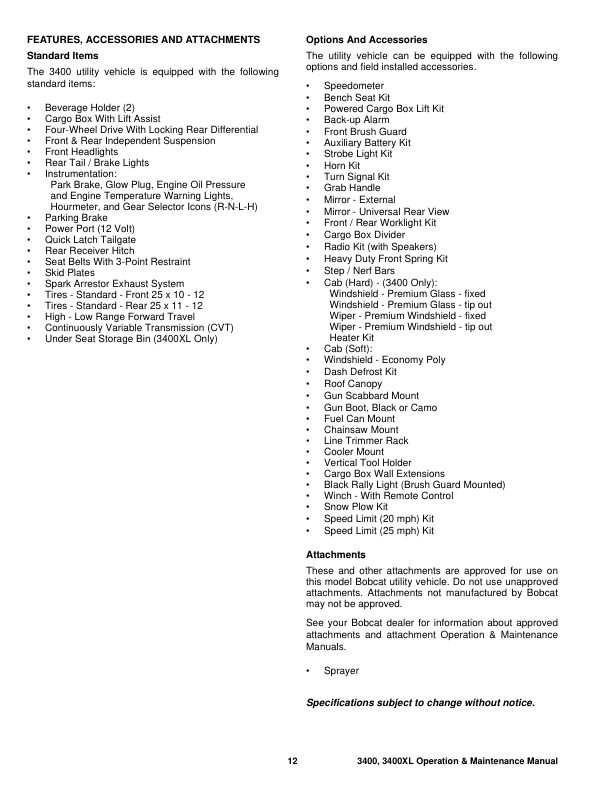 Bobcat 3400 3400XL Utility Vehicle Operation and Maintenance Manual AJNU AJNW