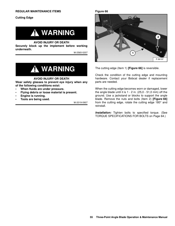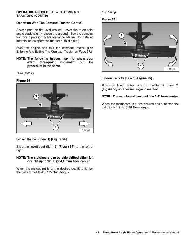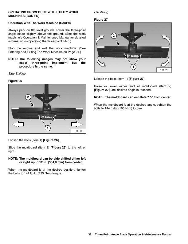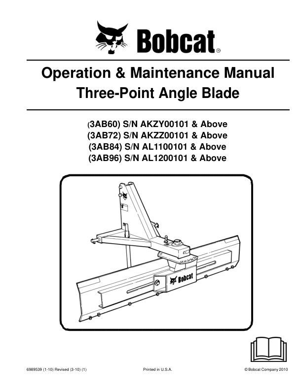 Bobcat 3AB60 3AB72 3AB84 3AB96 Three Point Angle Blade Operation and Maintenance Manual