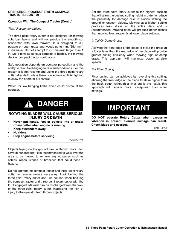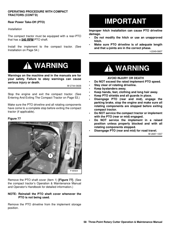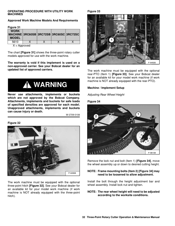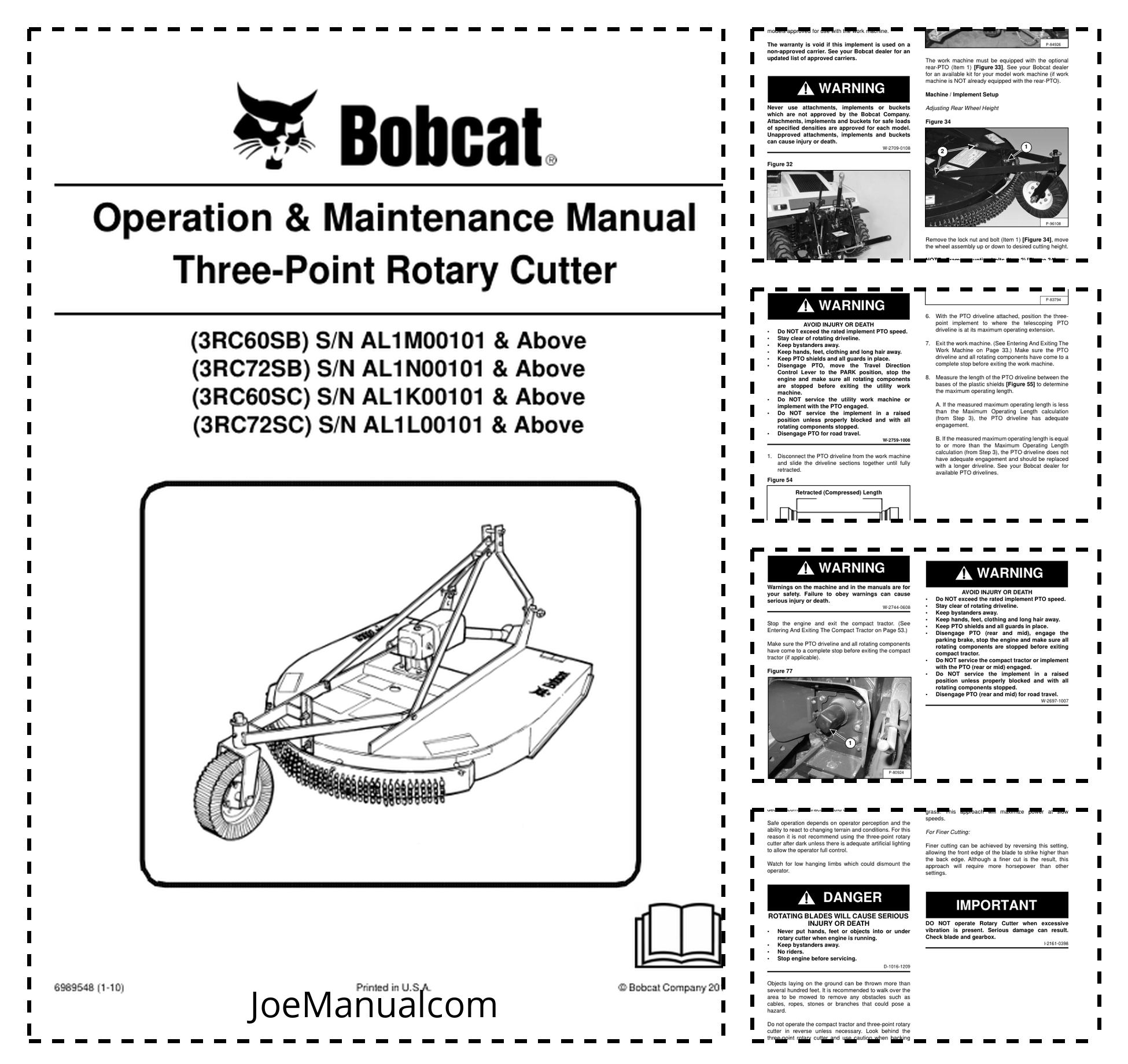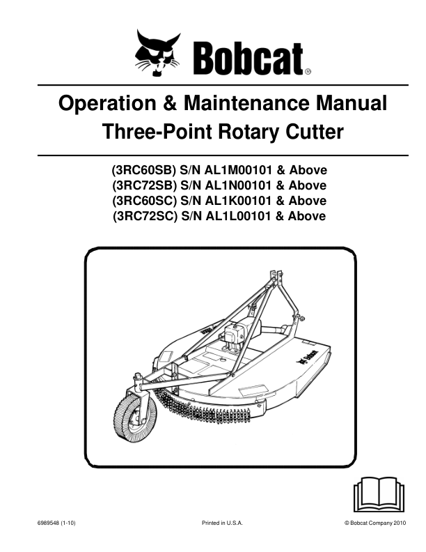 Bobcat 3RC60SB 3RC72SB Three-Point Rotary Cutter Operation and Maintenance Manual
