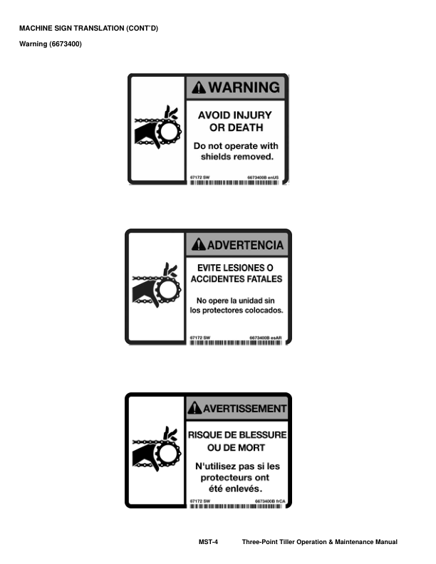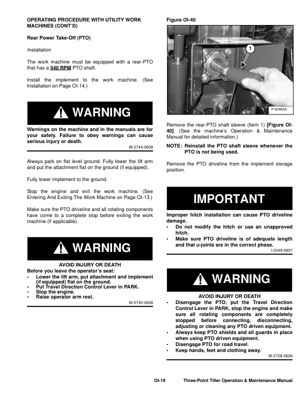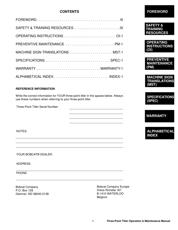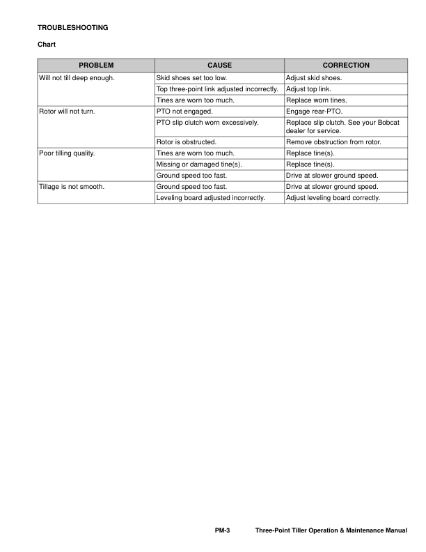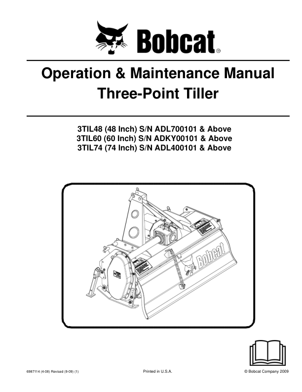 Bobcat 3TIL48 3TIL60 3TIL74 Three-Point Tiller Operation and Maintenance Manual
