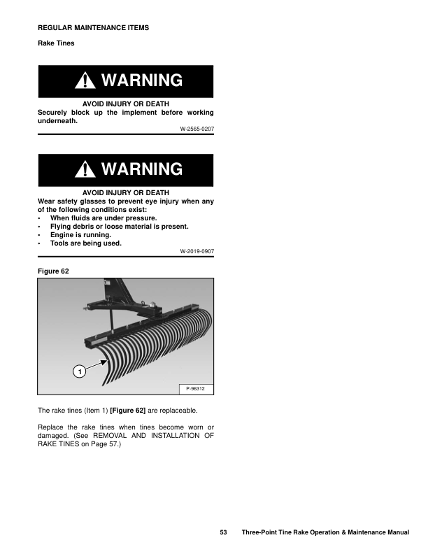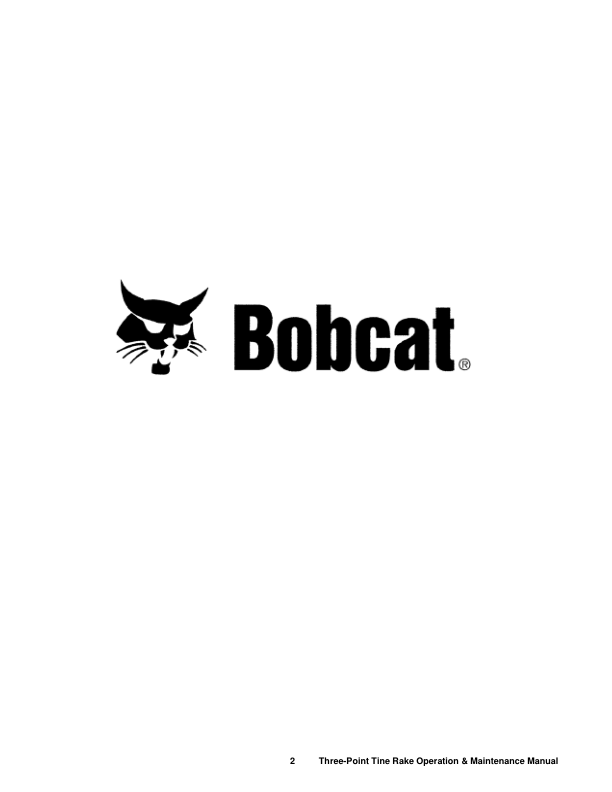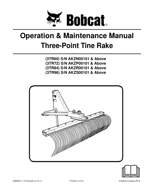 Bobcat 3TR60 3TR72 3TR84 3TR96 Three-Point Tine Rake Operation and Maintenance Manual