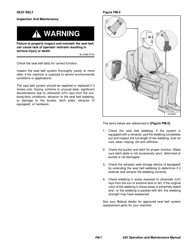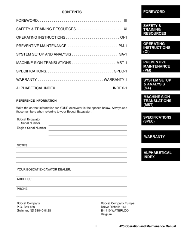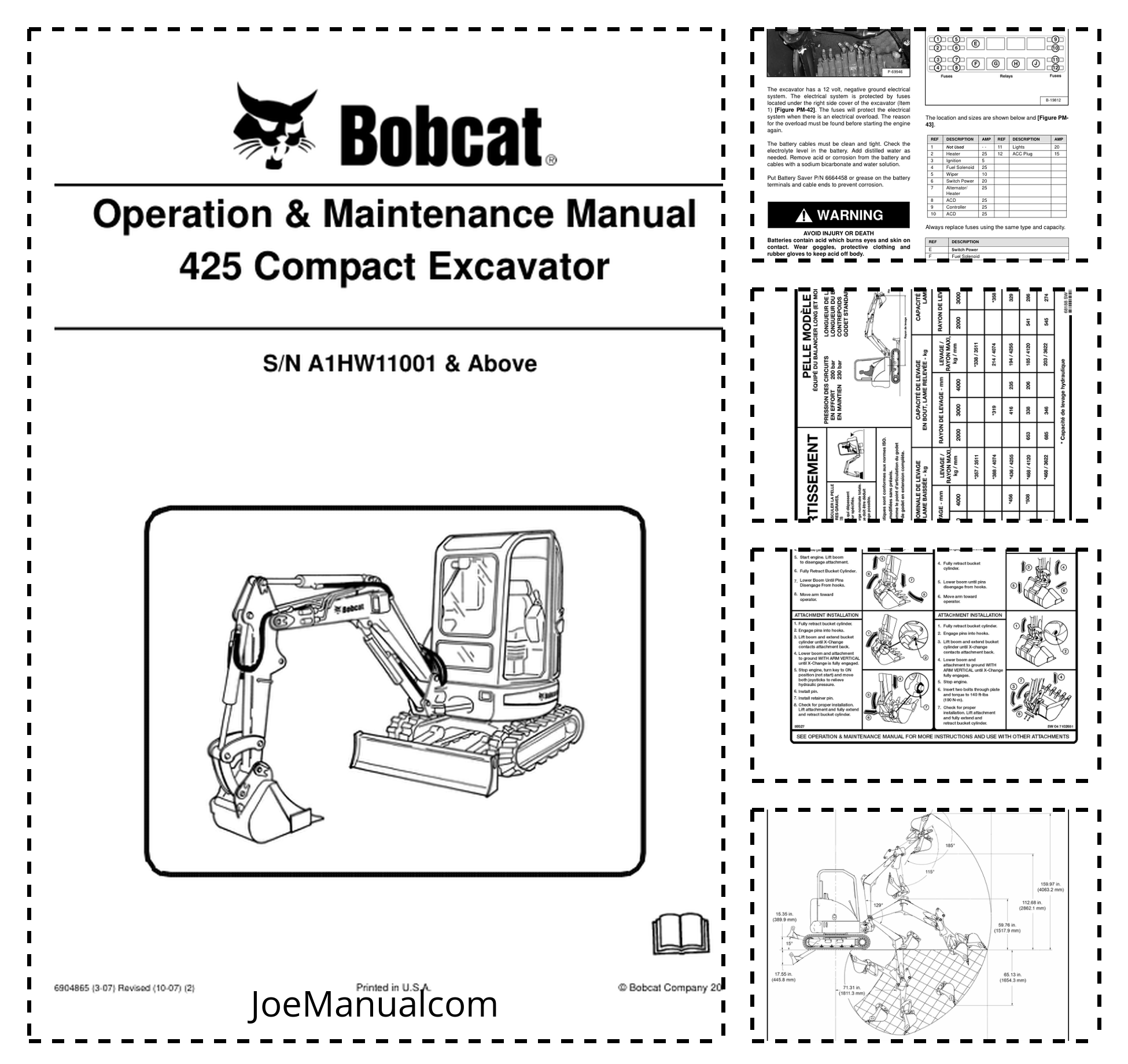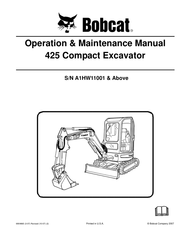 Bobcat 425 Excavator Operation and Maintenance Manual A1HW11001