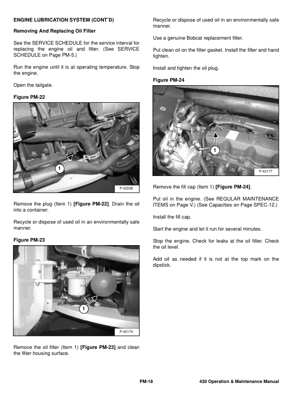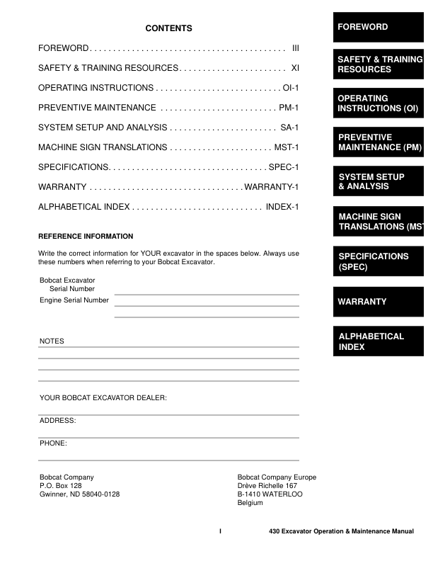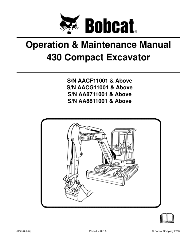 Bobcat 430 Excavator Operation and Maintenance Manual AACF AACG AA87 AA88