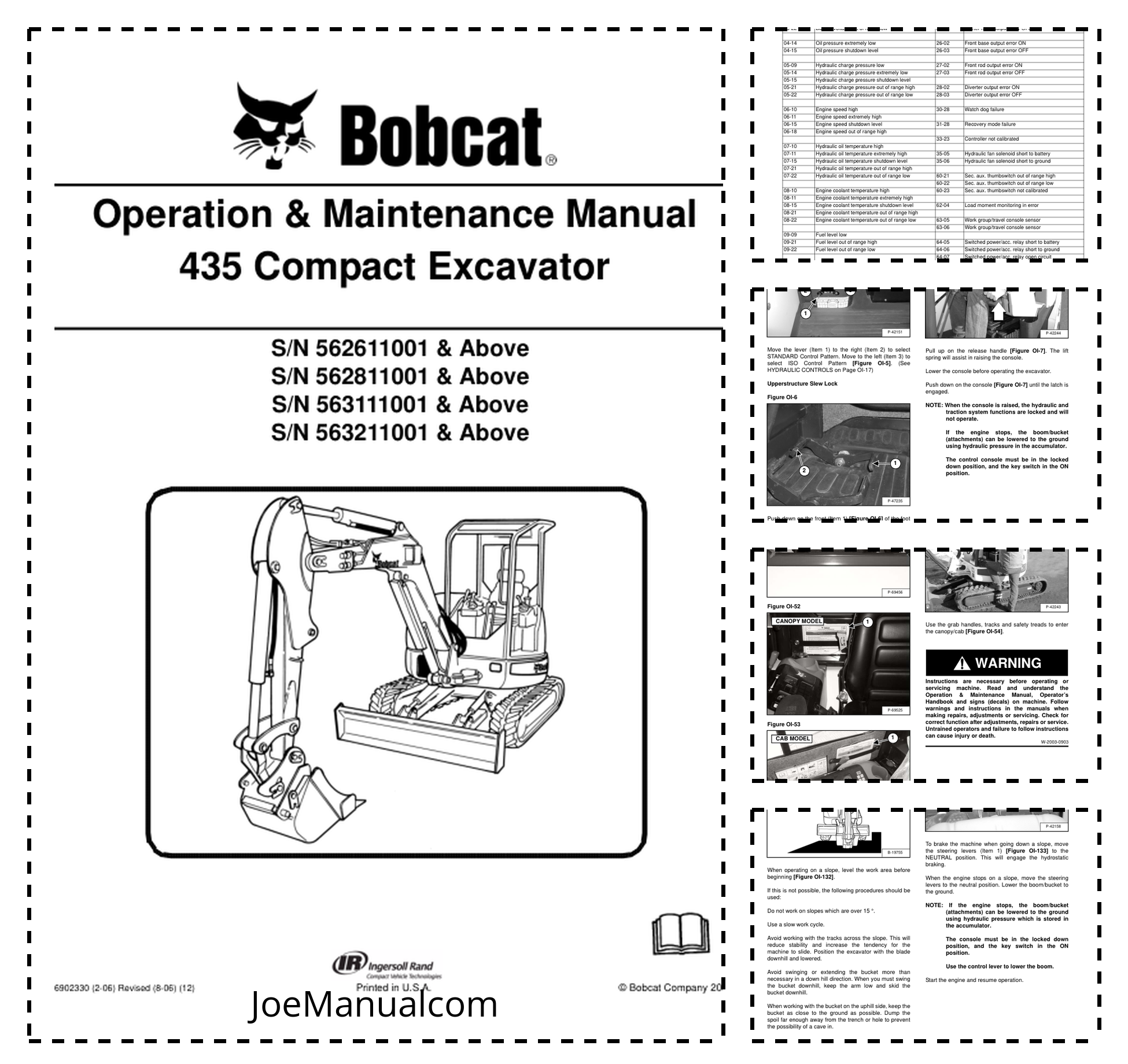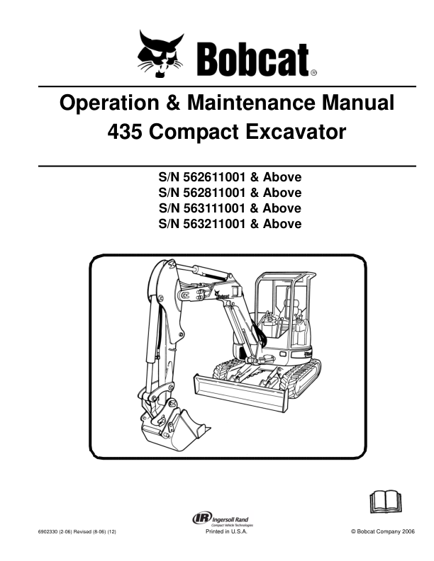 Bobcat 435 Excavator Operation and Maintenance Manual 5626 5628 5631 5632
