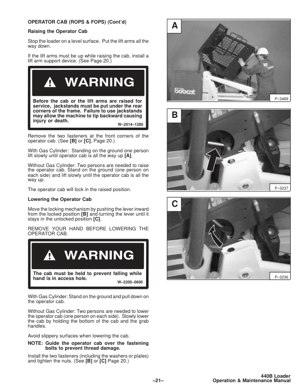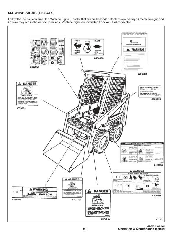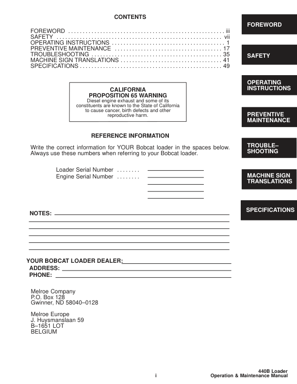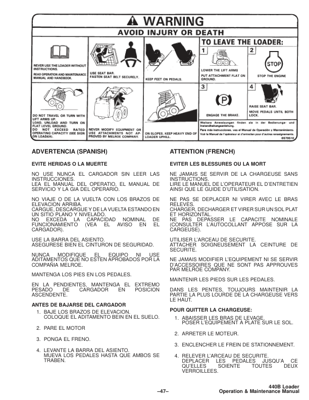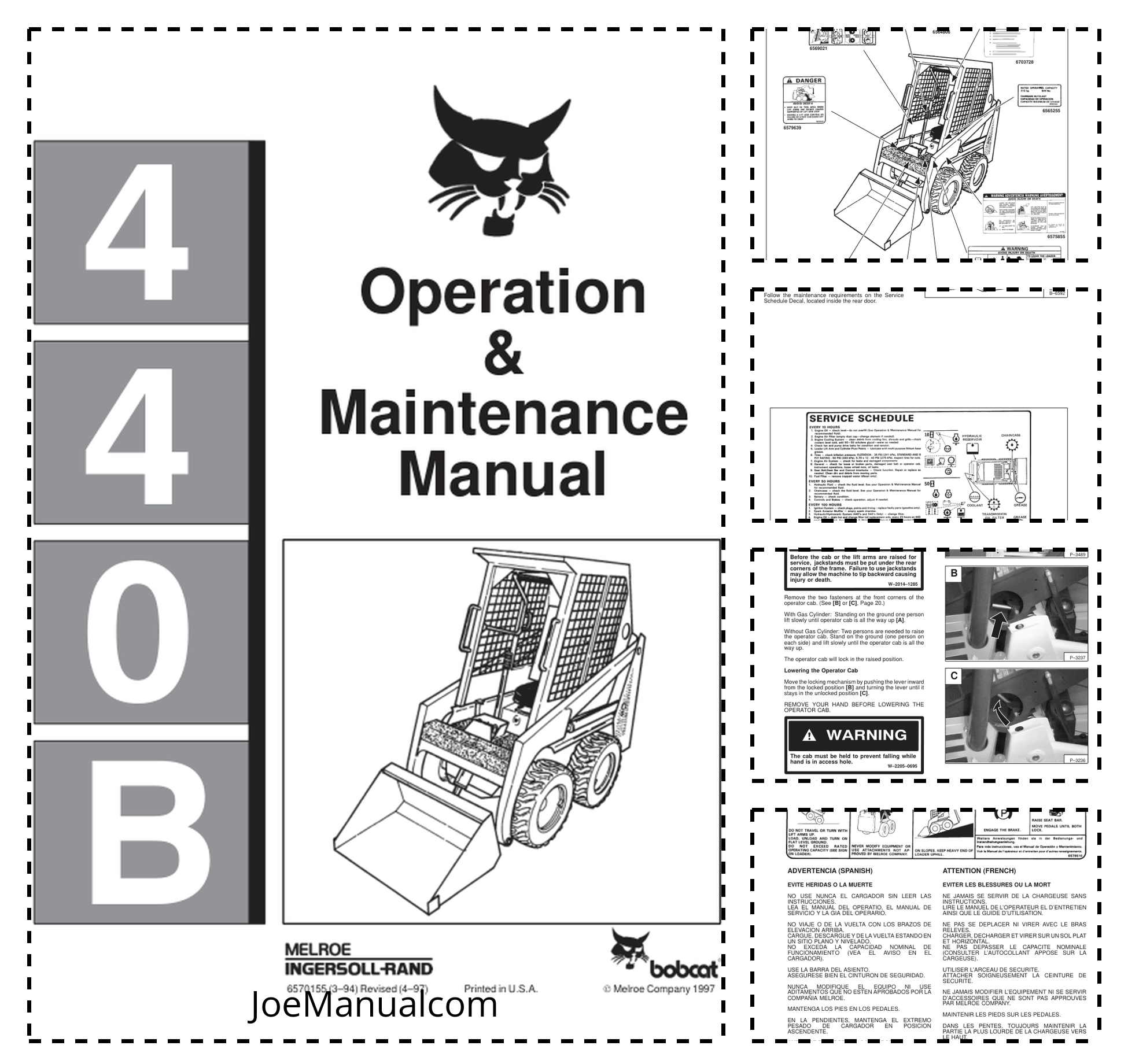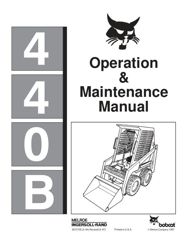Bobcat 440B Skid Steer Loader Operation and Maintenance Manual 1997