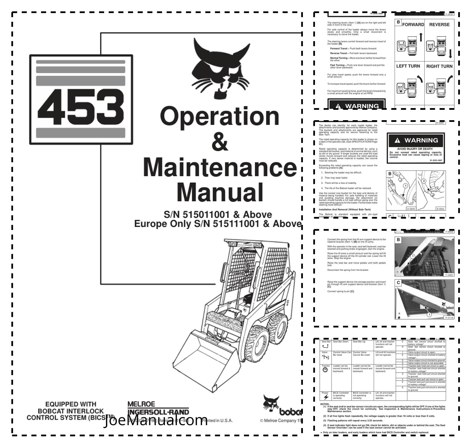 Bobcat 453 Skid Steer Loader Operation and Maintenance Manual 5150 5151 1998y