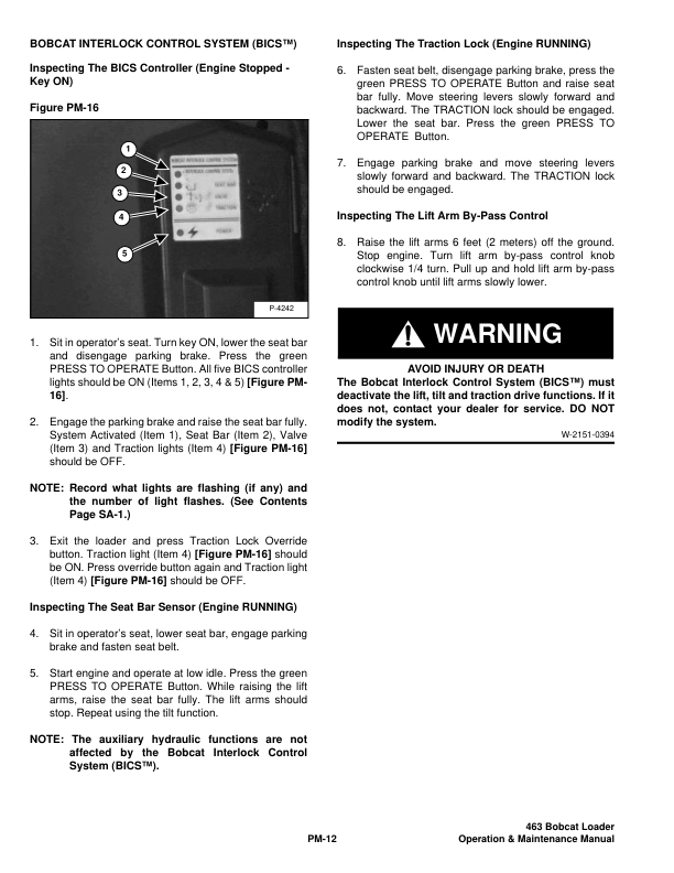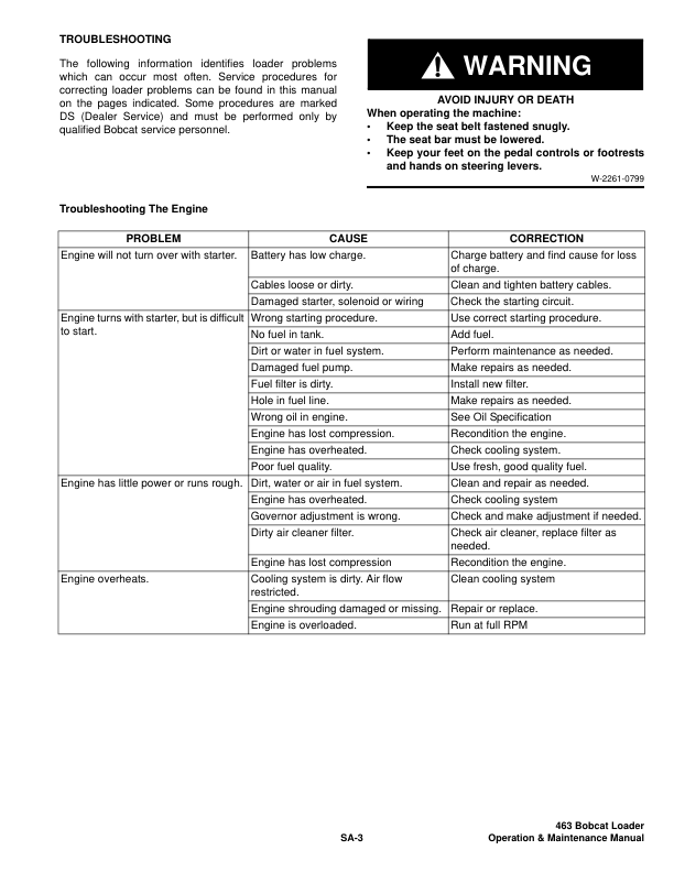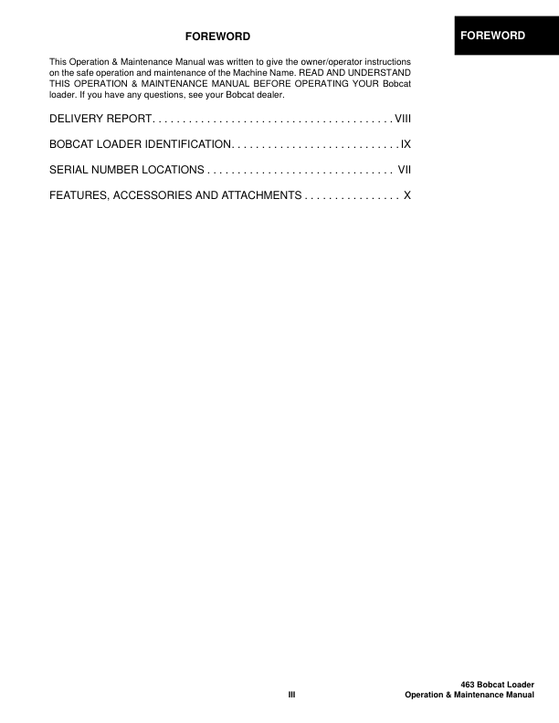 Bobcat 463 Skid Steer Loader Operation and Maintenance Manual 5222 5221