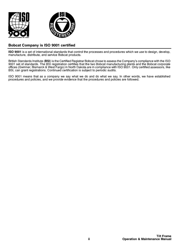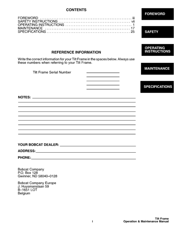 Bobcat 48 60 Inch Tilt Frame Operation and Maintenance Manual
