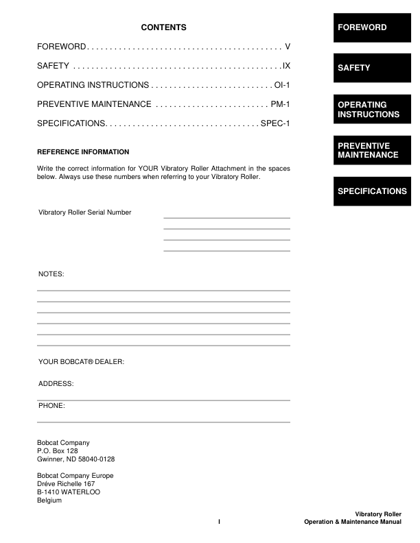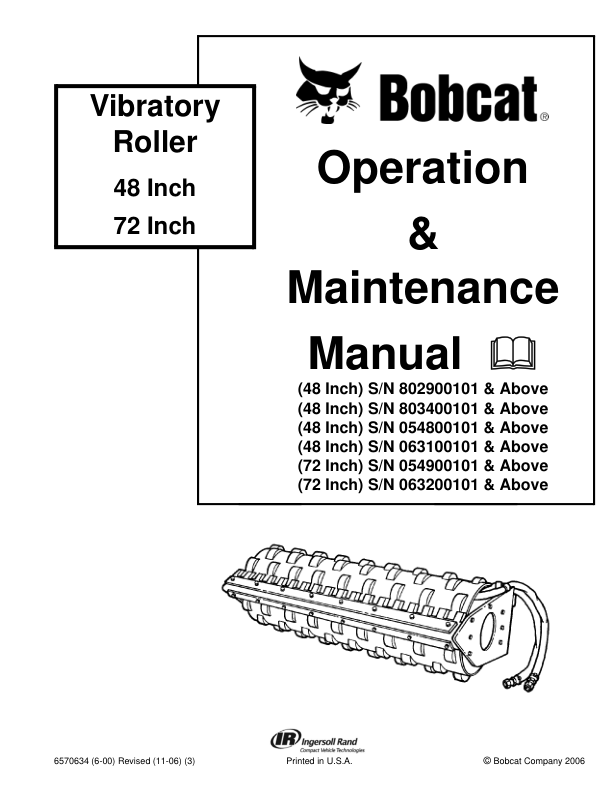 Bobcat 48 72 Inch Vibratory Roller Operation and Maintenance Manual