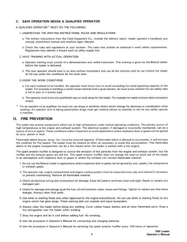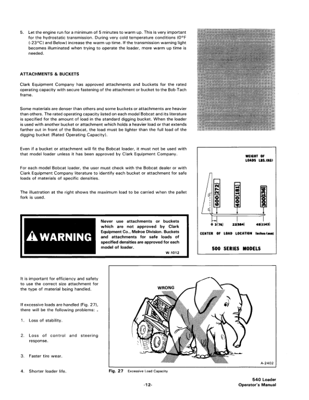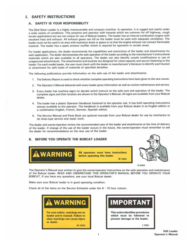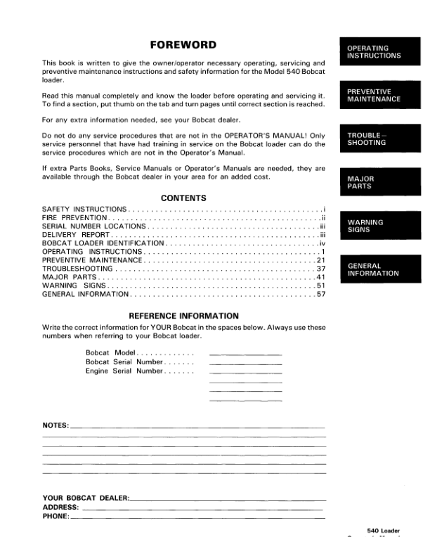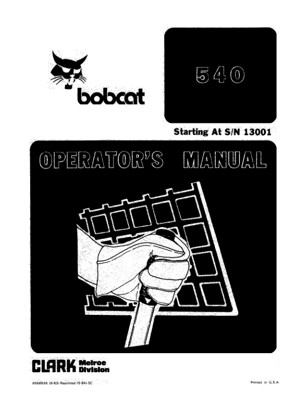 Bobcat 540 Skidsteer Loader Operation and Maintenance Manual 13001