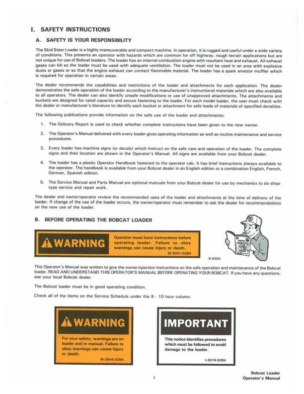 Bobcat 540 Skidsteer Loader Operation and Maintenance Manual 20001