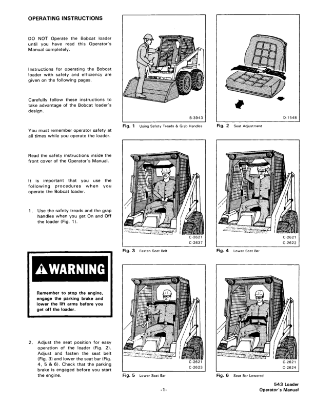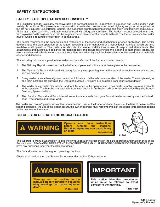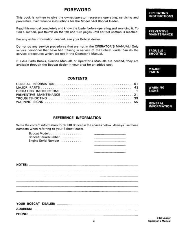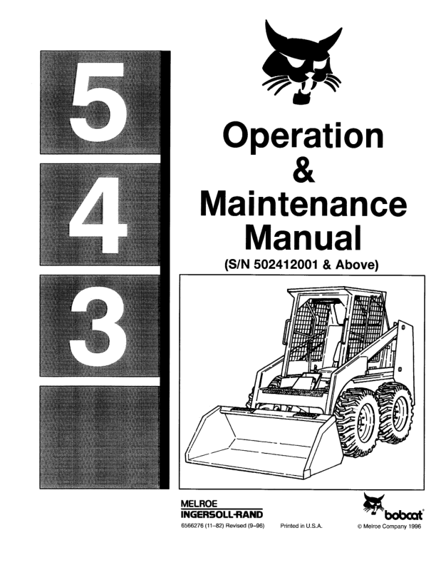 Bobcat 543 Skid Steer Loader Operation and Maintenance Manual 502412001