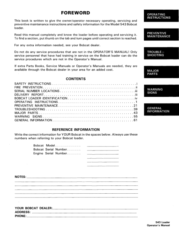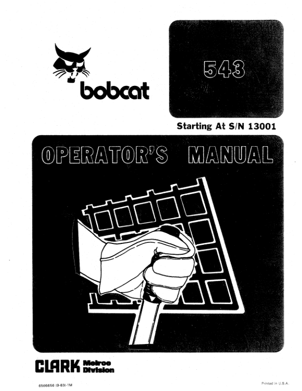 Bobcat 543 Skidsteer Loader Operation and Maintenance Manual 13001