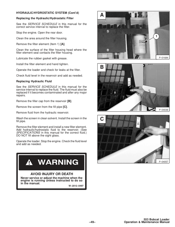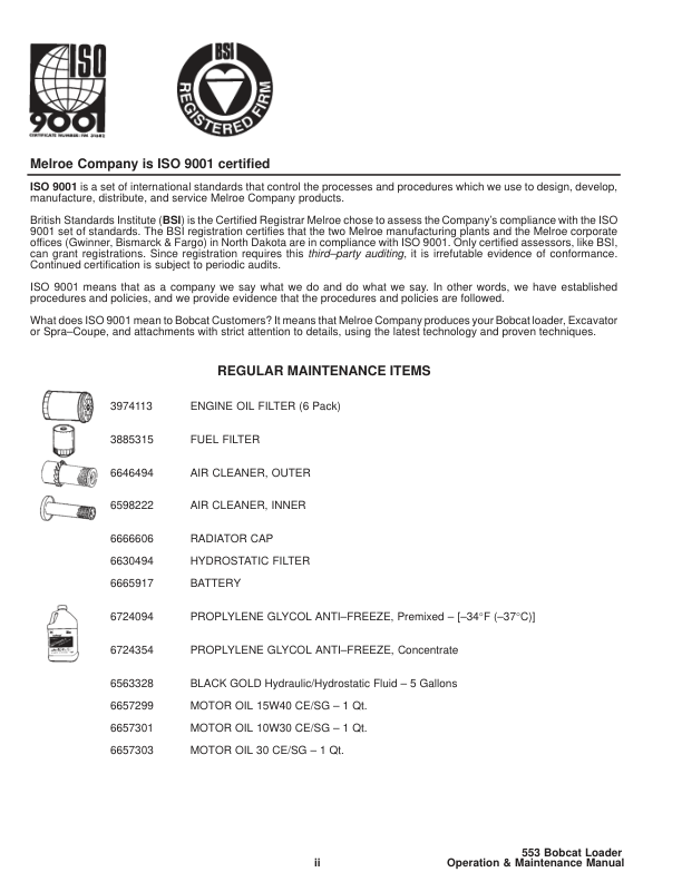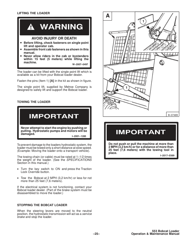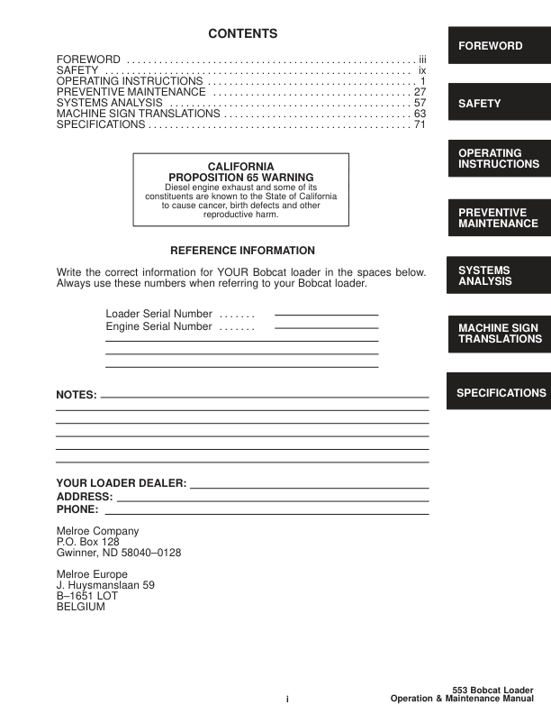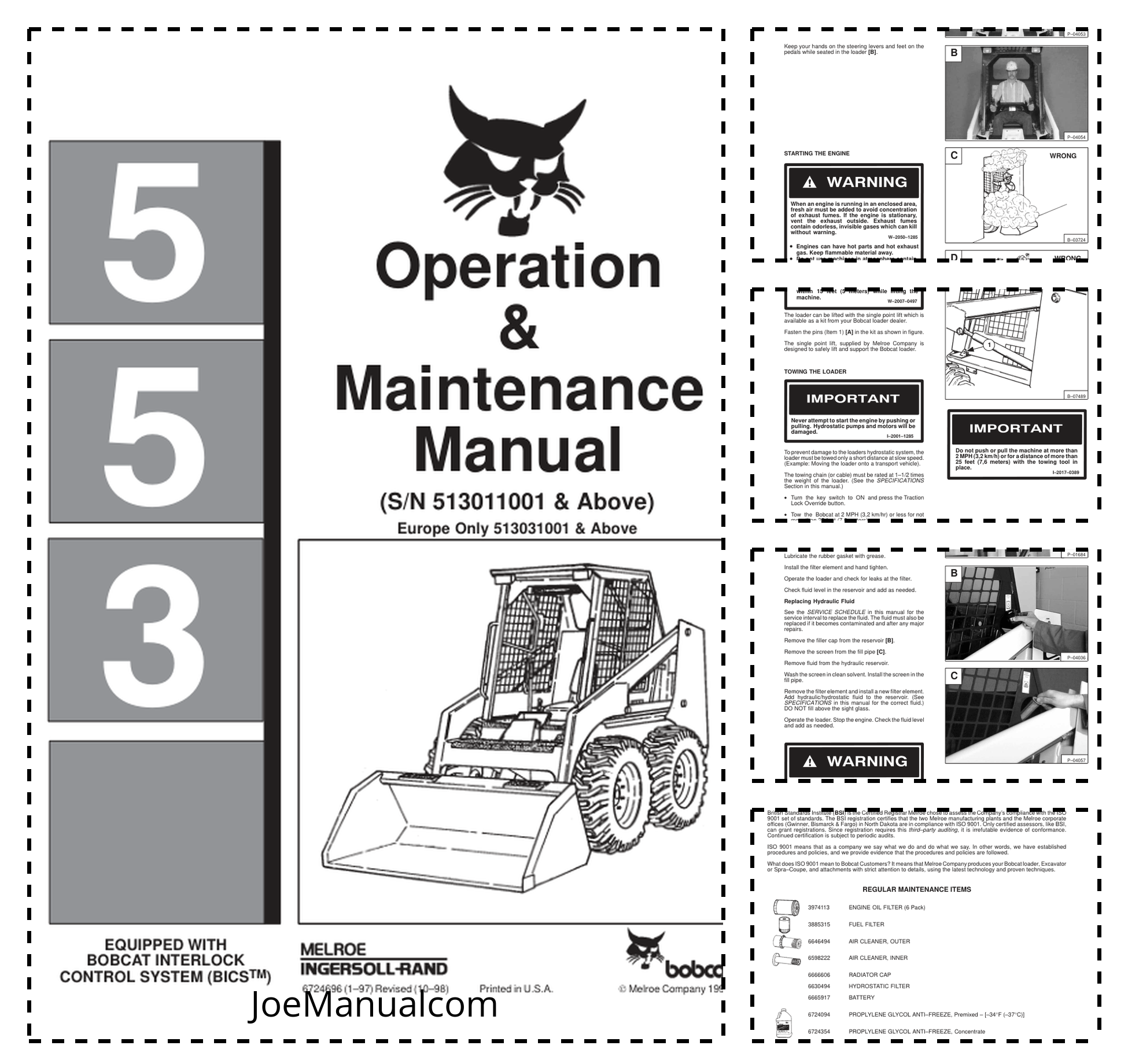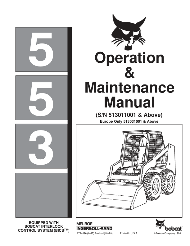 Bobcat 553 Skid Steer Loader Operation and Maintenance Manual 5130 5130
