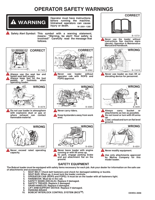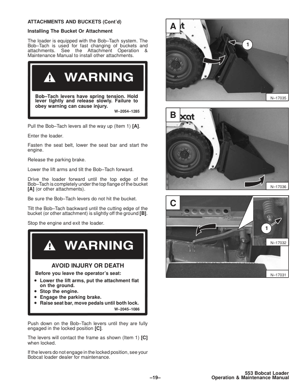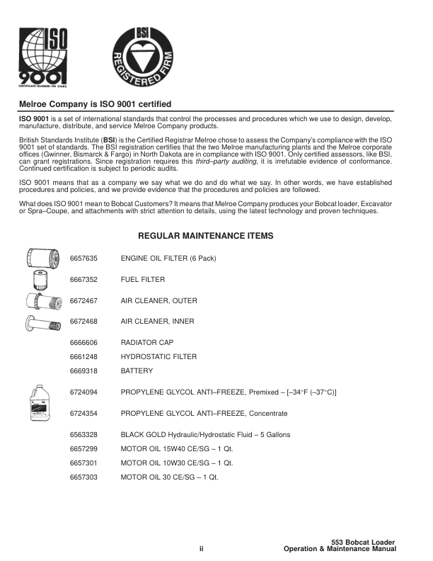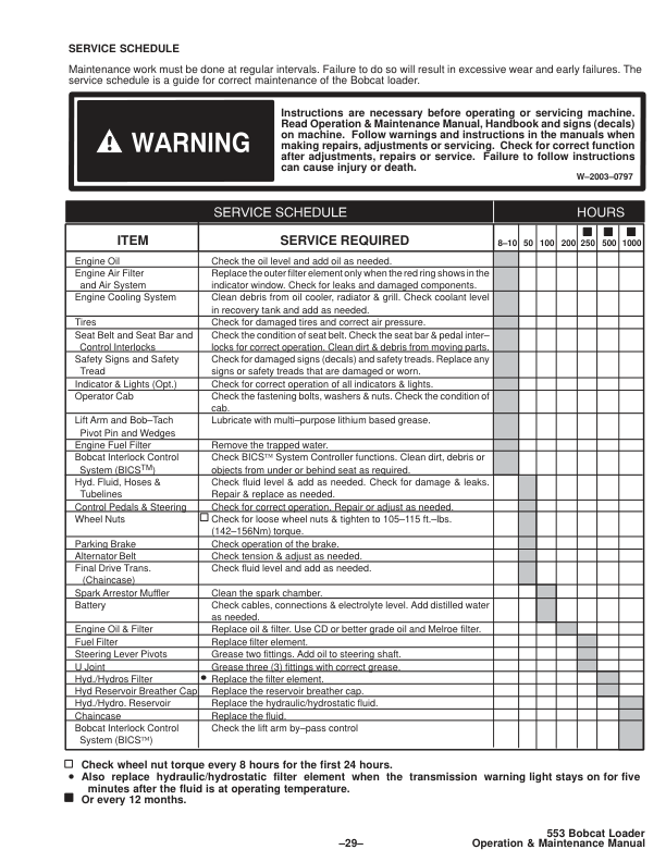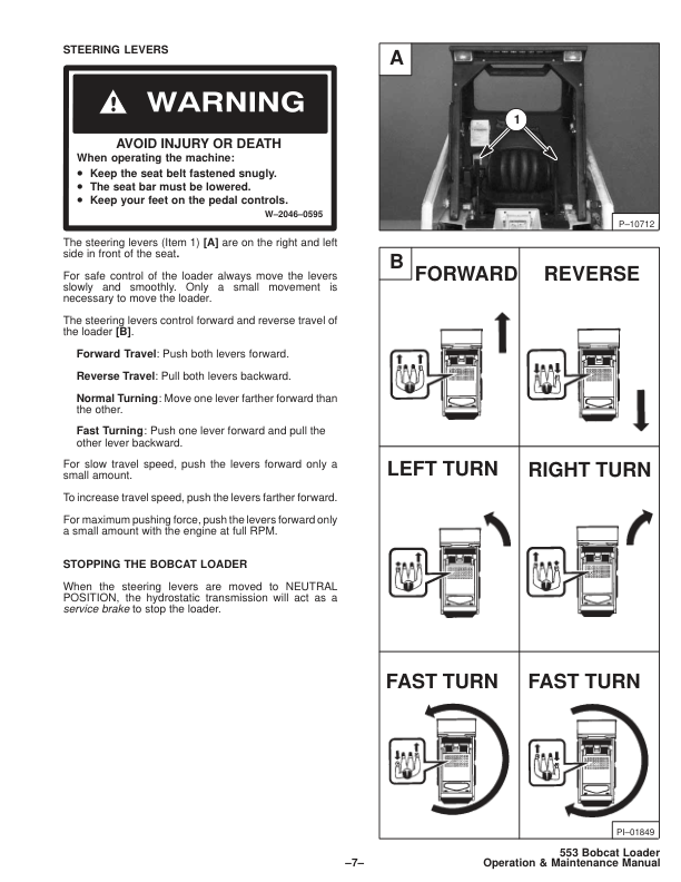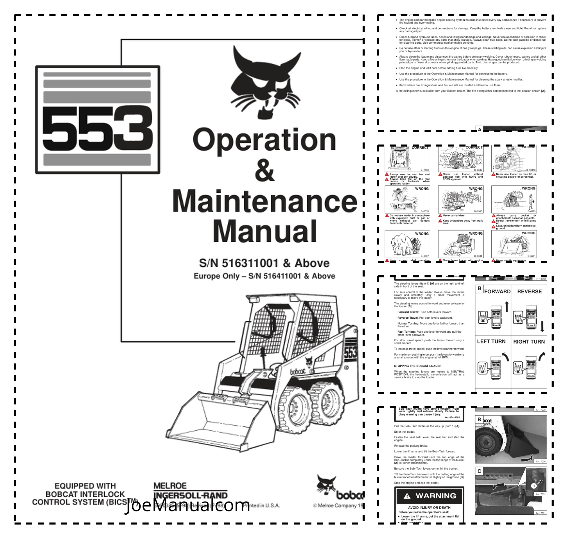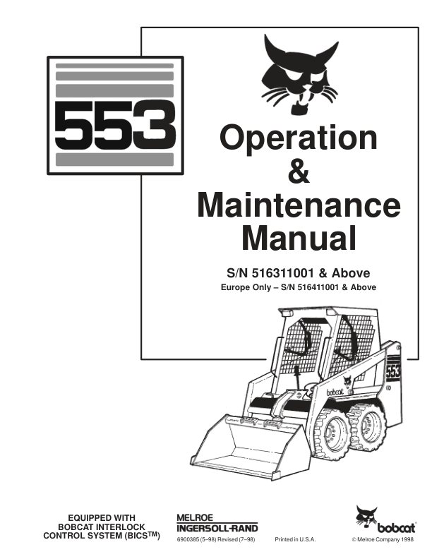 Bobcat 553 Skid Steer Loader Operation and Maintenance Manual 5163 5164