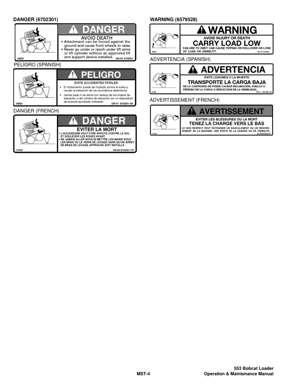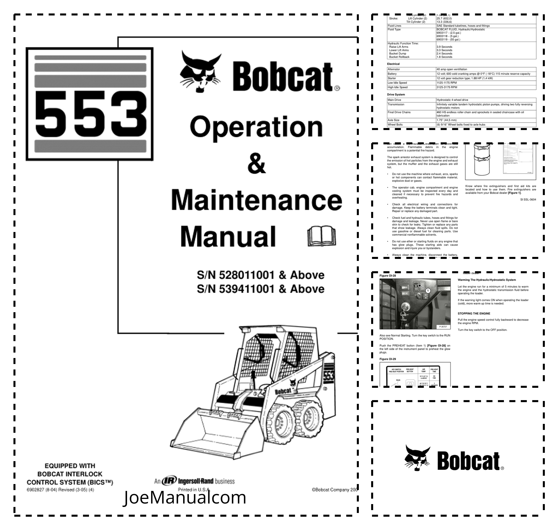 Bobcat 553 Skid Steer Loader Operation and Maintenance Manual 5280 5394