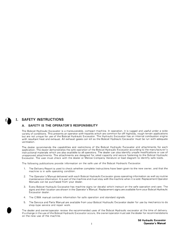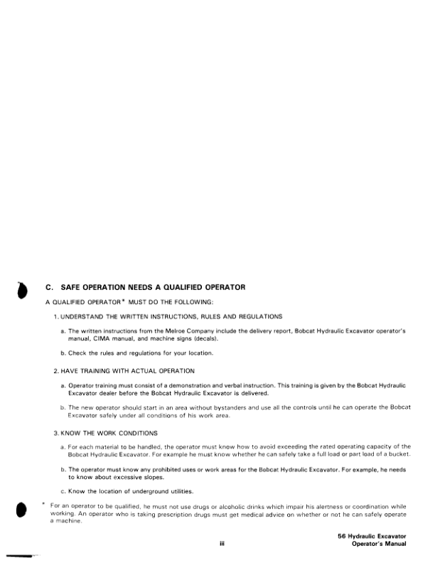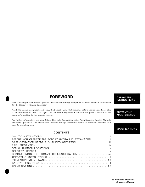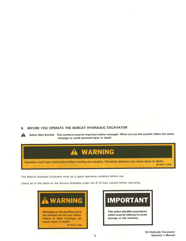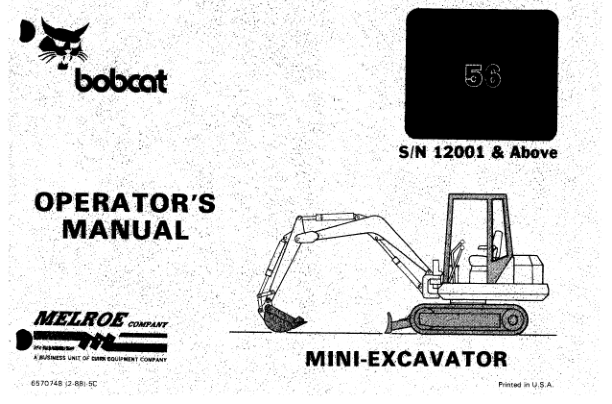 Bobcat 56 Excavator Operation and Maintenance Manual 12001