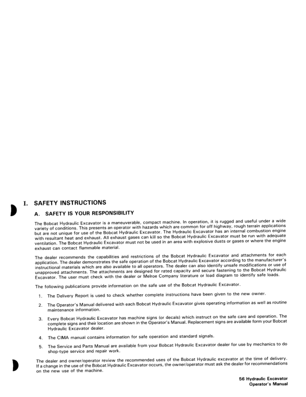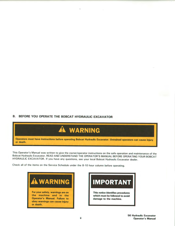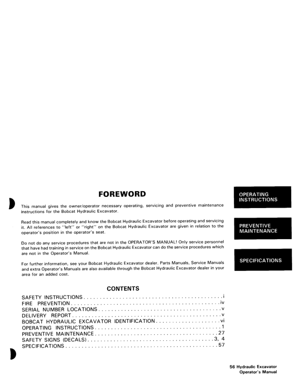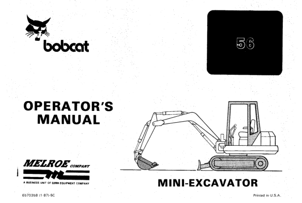 Bobcat 56 Excavator Operation and Maintenance Manual