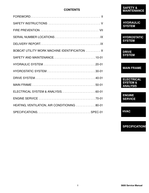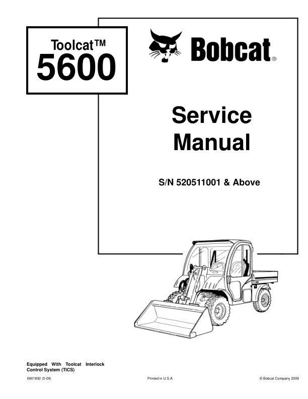 Bobcat 5600 Toolcat Utility Work Machine Service Manual 520511001