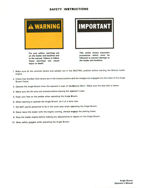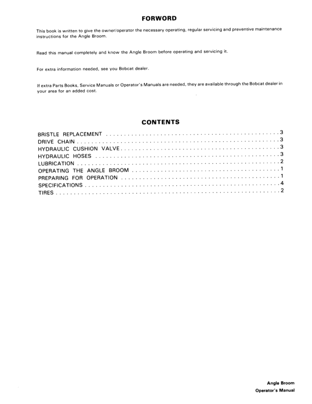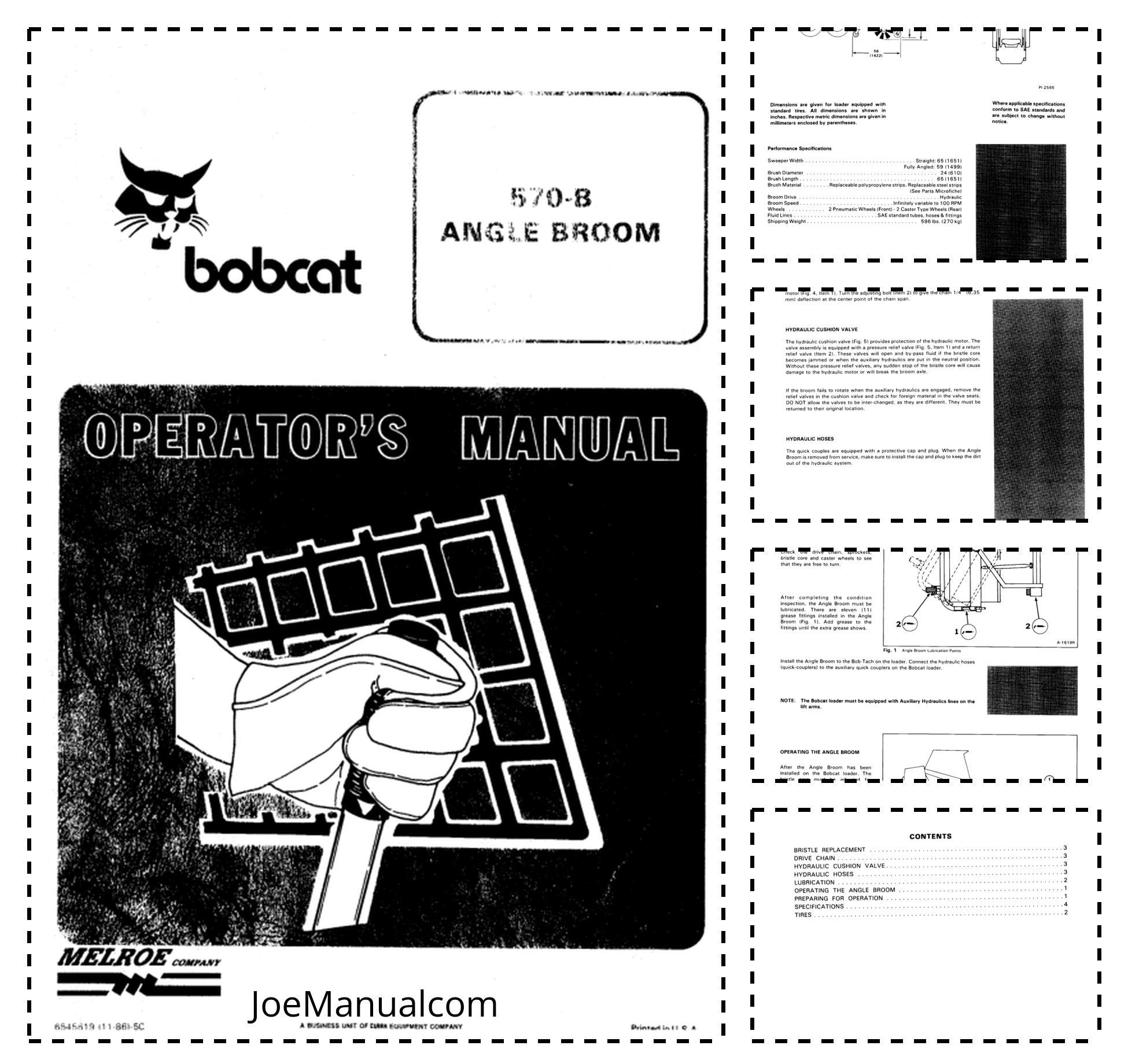 Bobcat 570-B Angle Broom Operators Manual. This manual provides essential information for the safe and efficient operation and maintenance of the Bobcat 570-B Angle Broom attachment. It includes detailed instructions, safety guidelines, troubleshooting tips, and maintenance schedules to help operators maximize the performance and lifespan of their equipment.