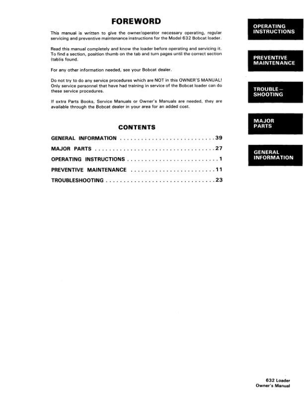 Bobcat 632 Skid Steer Loader Operation and Maintenance Manual 15320
