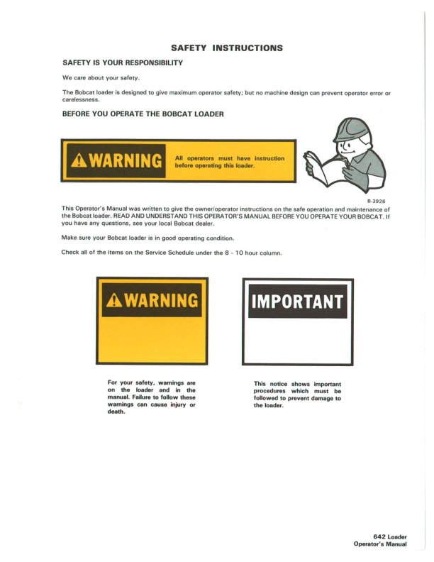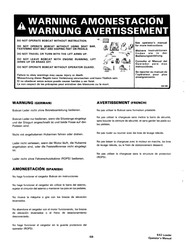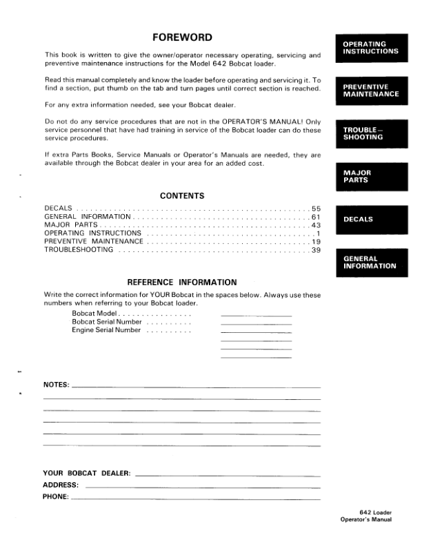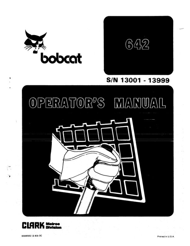 Bobcat 642 Skidsteer Loader Operation and Maintenance Manual 13001 13999