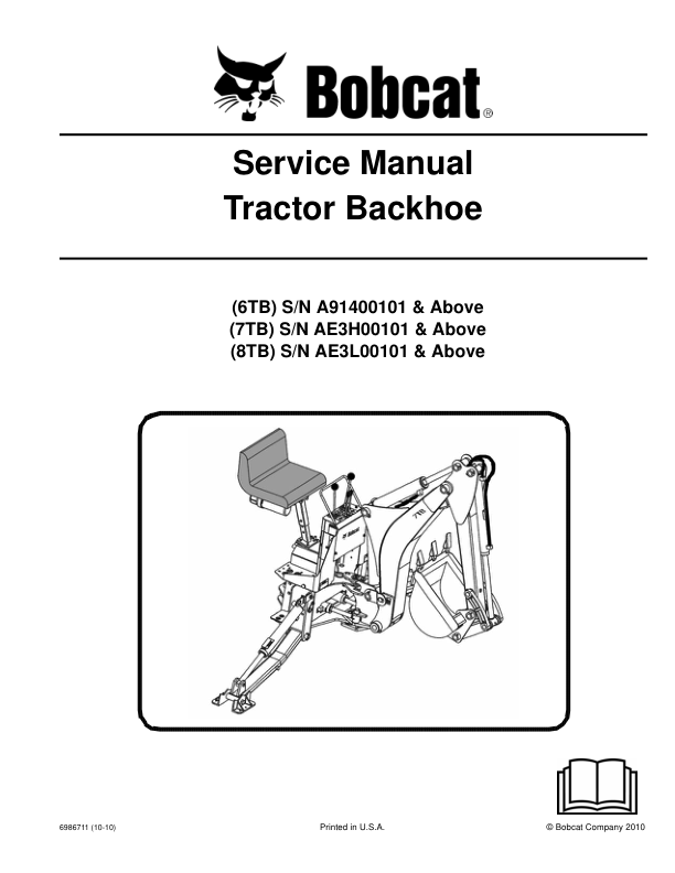 Bobcat 6TB 7TB 8TB Tractor Backhoe Service Manual AE3H00101