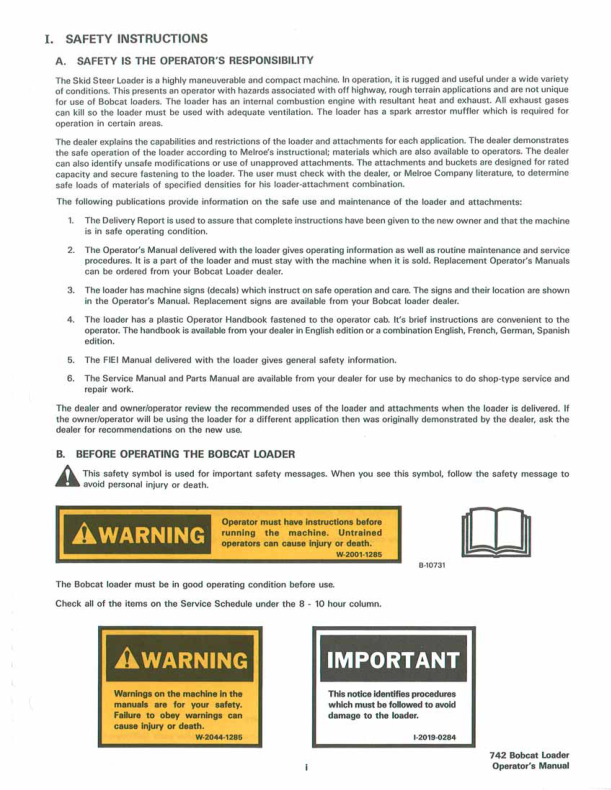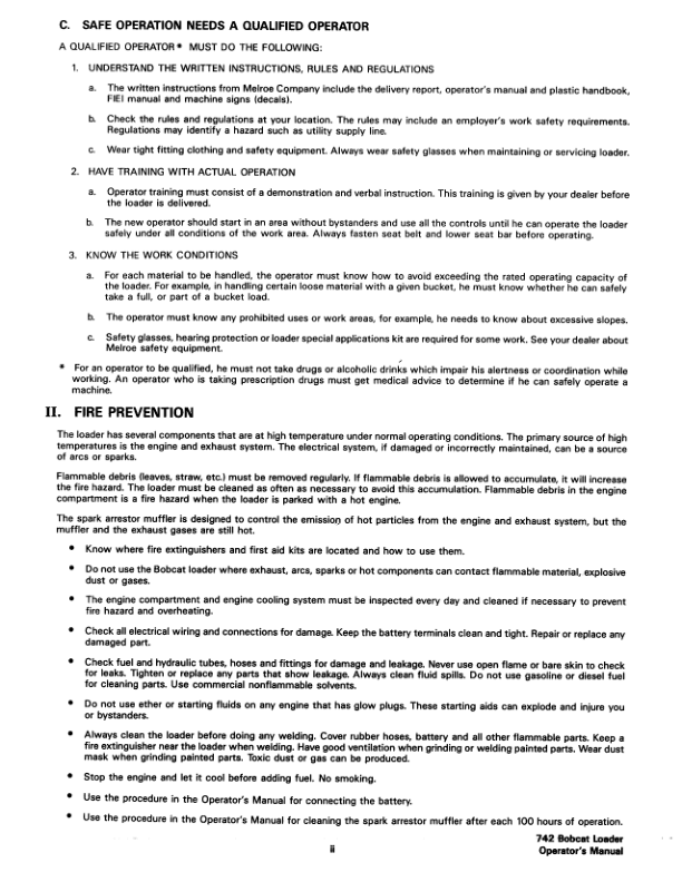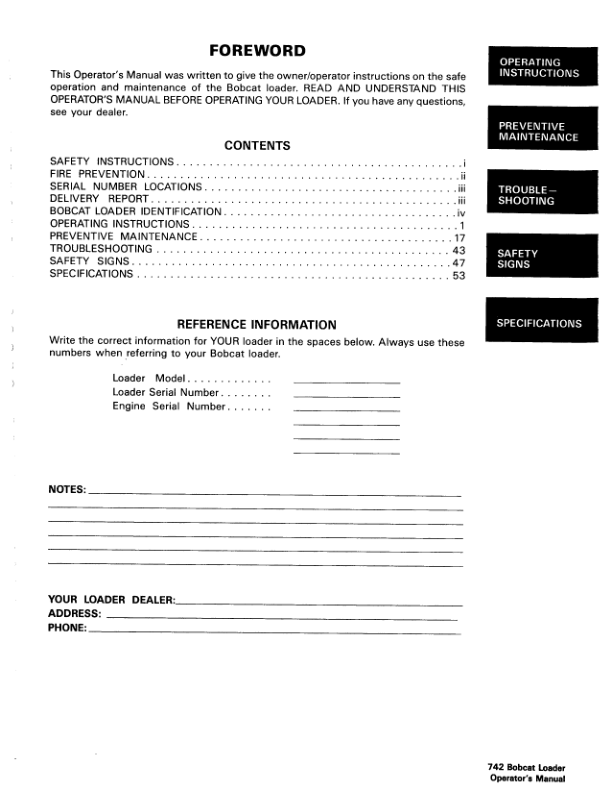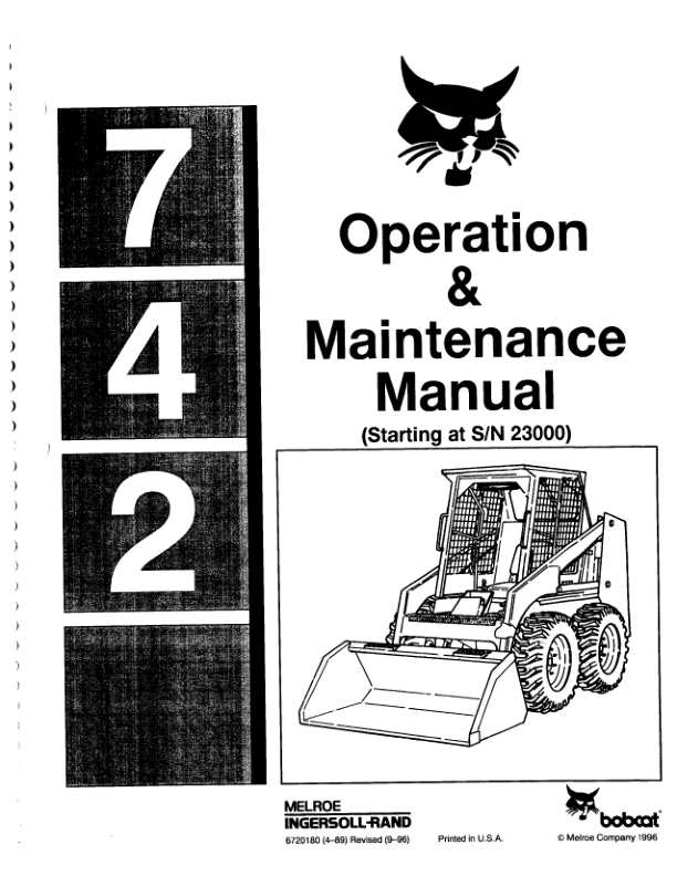 Bobcat 742 Skidsteer Loader Operation and Maintenance Manual 23000