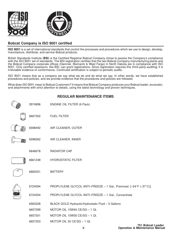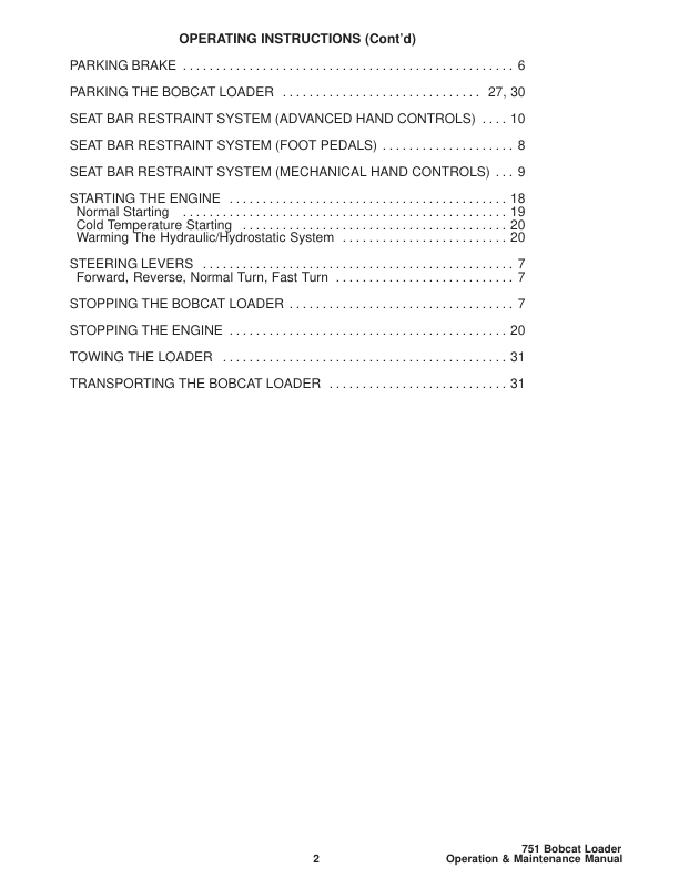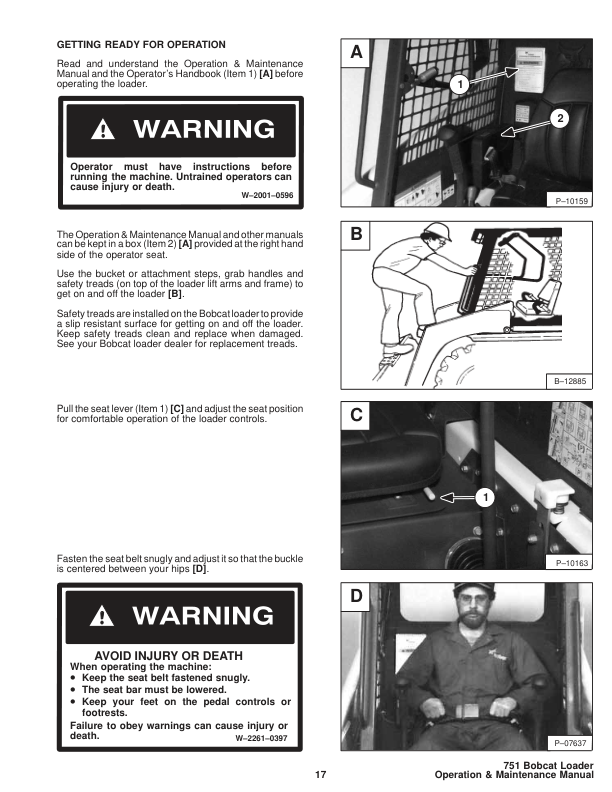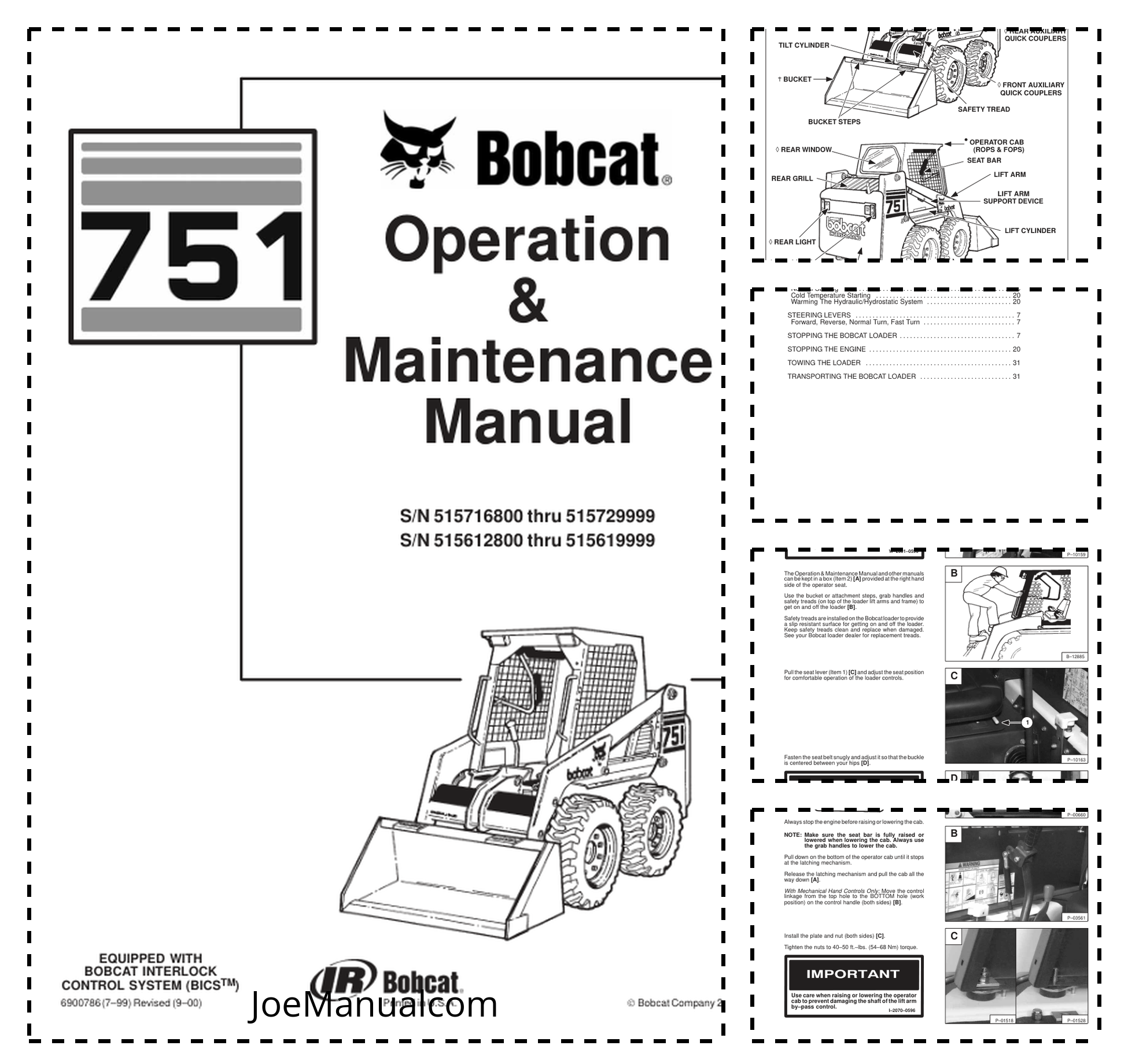 Bobcat 751 Skidsteer Loader Operation and Maintenance Manual 5157 5156