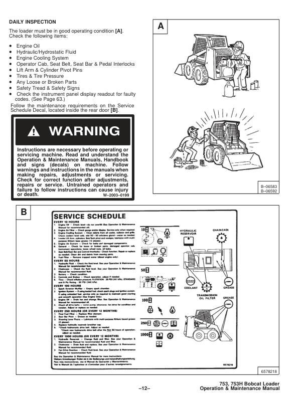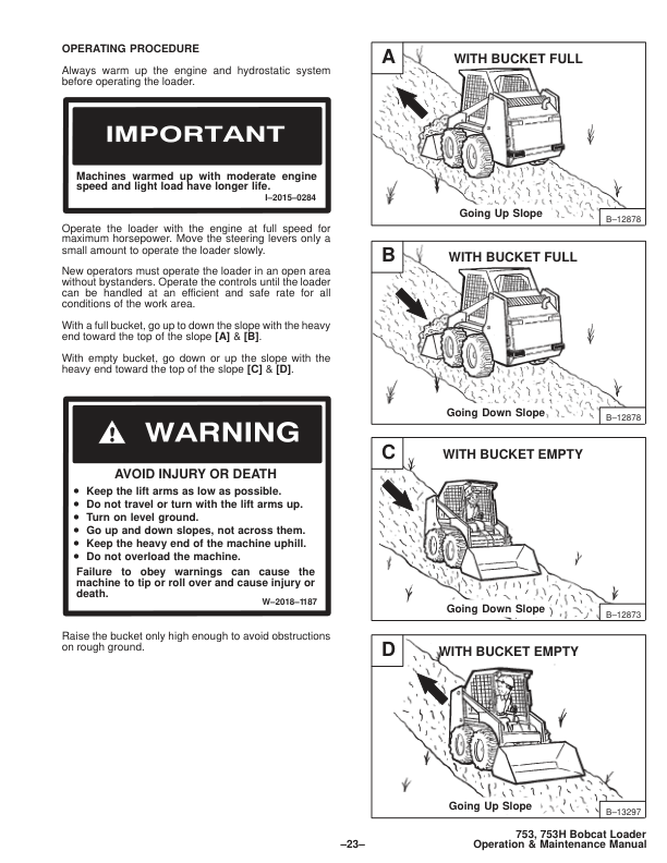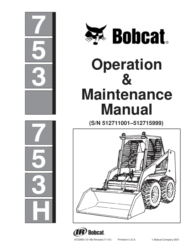 Bobcat 753 753H Skid Steer Loader Operators Manual 5127