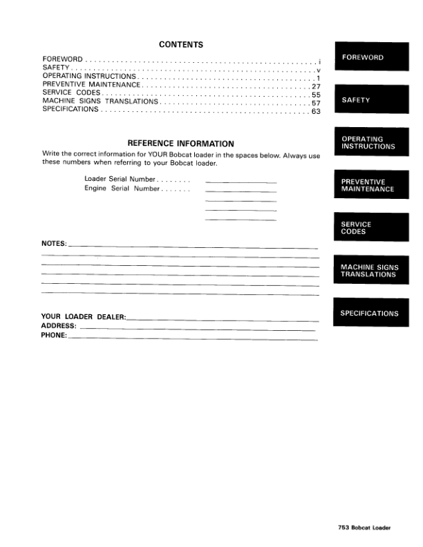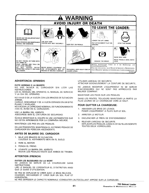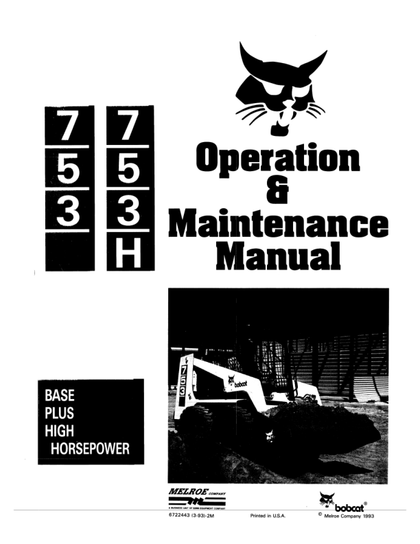 Bobcat 753 753H Skidsteer Loader Operation and Maintenance Manual