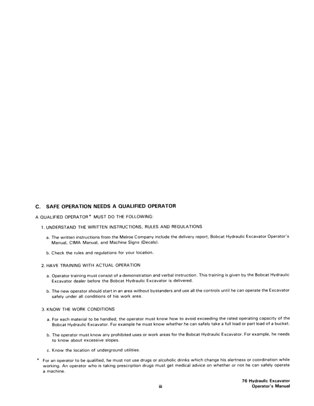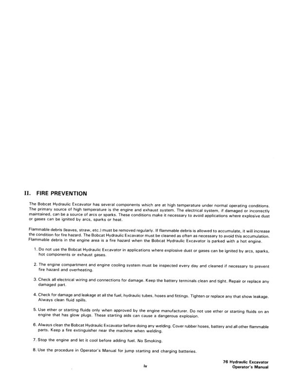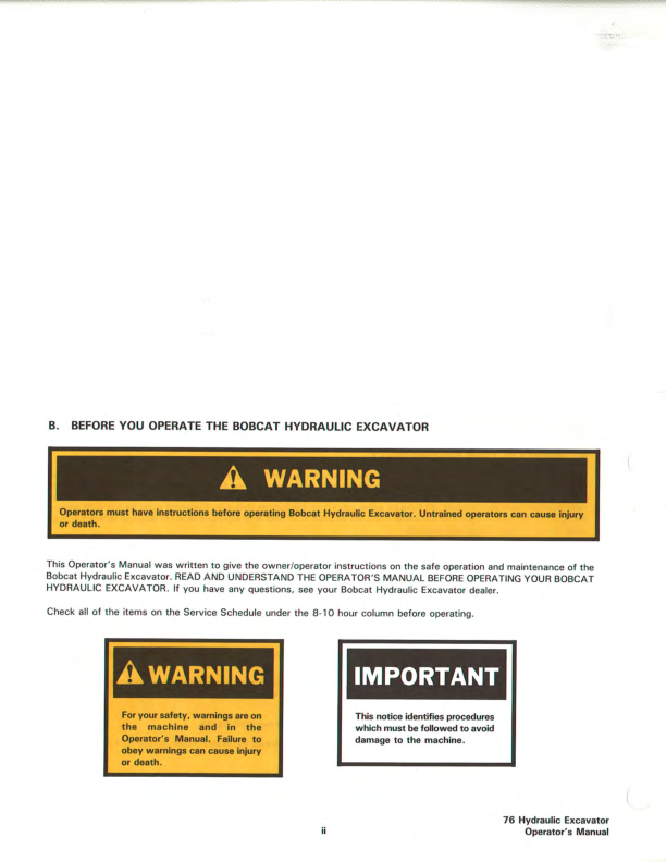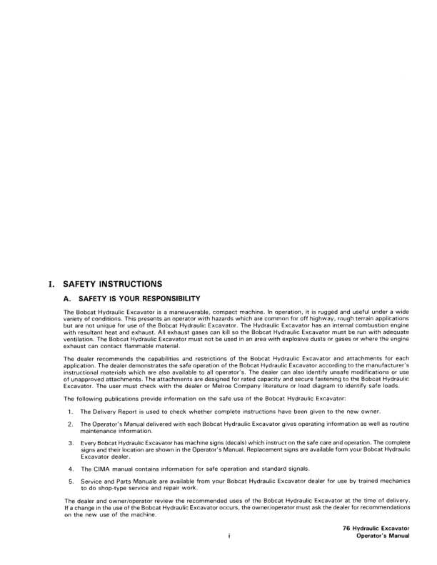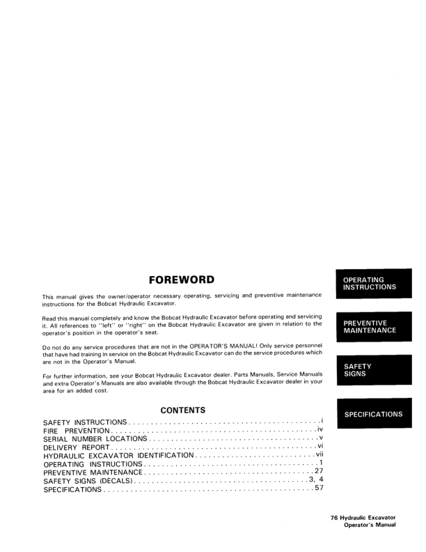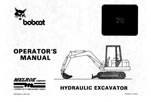 Bobcat 76 Excavator Operation and Maintenance Manual