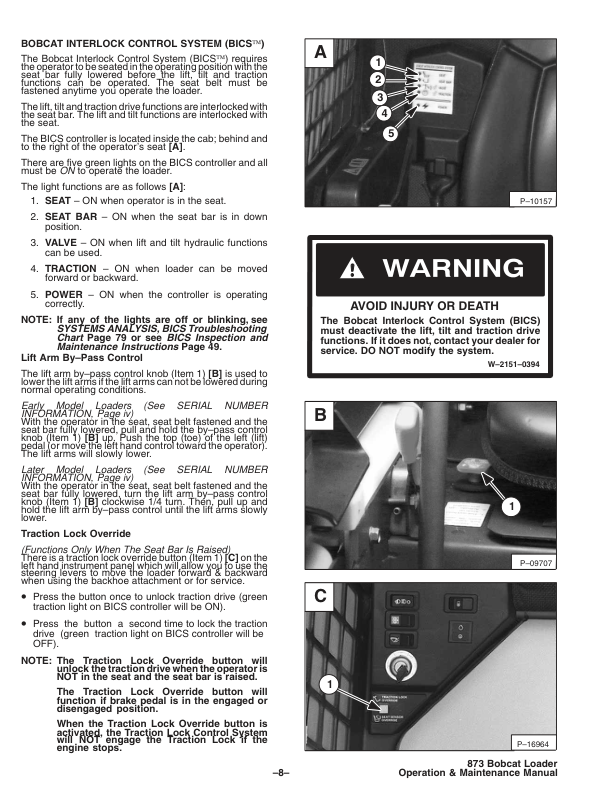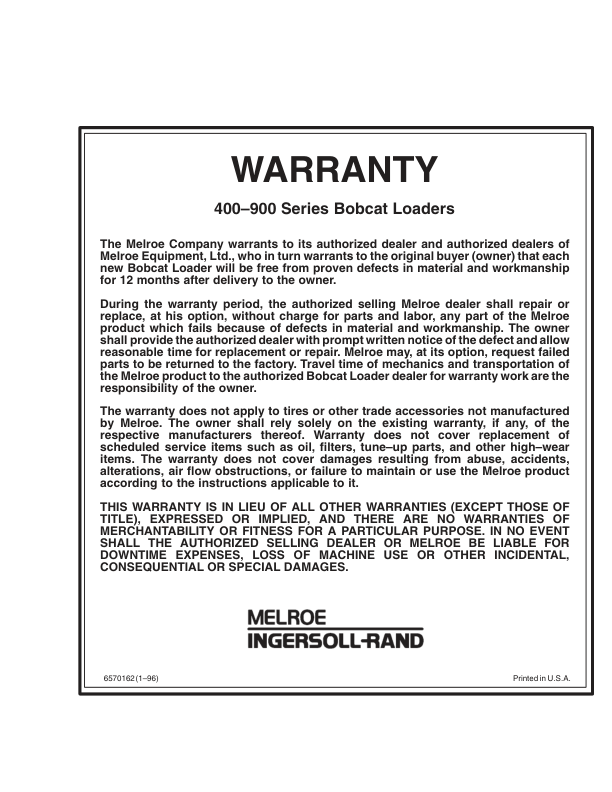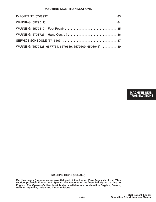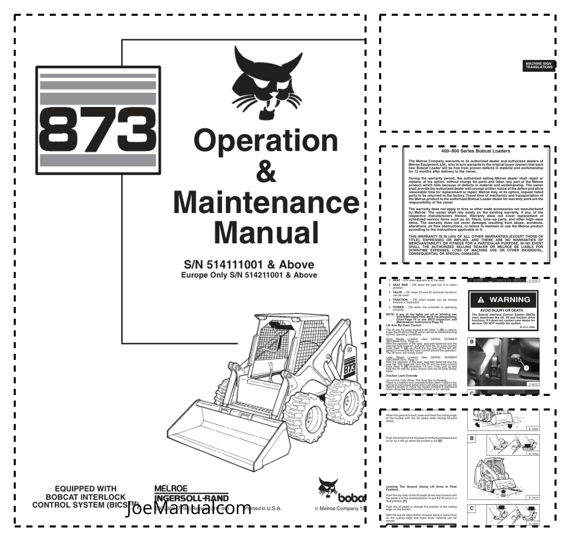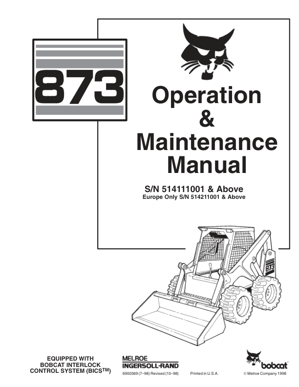 Bobcat 837 Skidsteer Loader Operation and Maintenance Manual 5141 5142