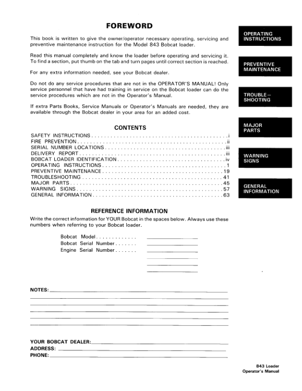 Bobcat 843 Skid Steer Operation and Maintenance Manual 15000 and Above