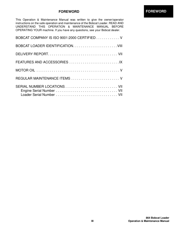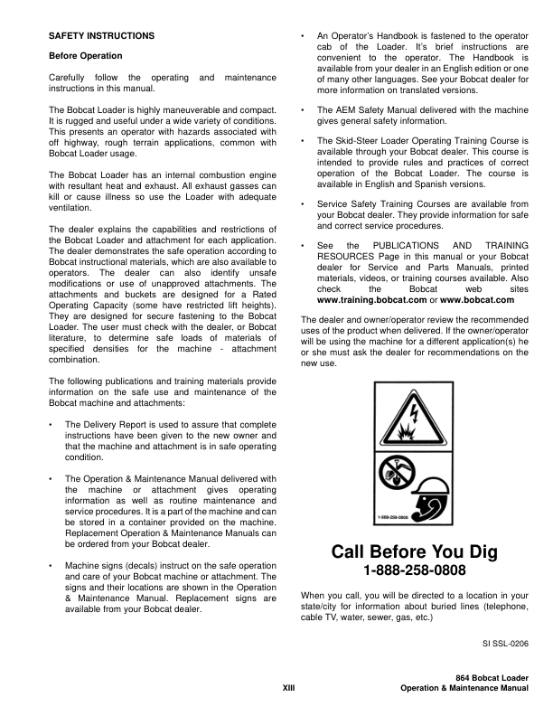 Bobcat 864 HF Skidsteer Loader Operation and Maintenance Manual