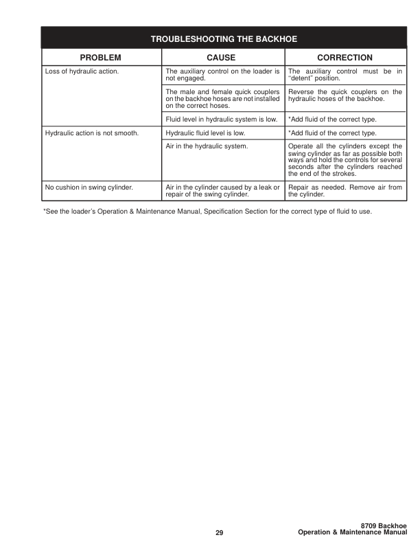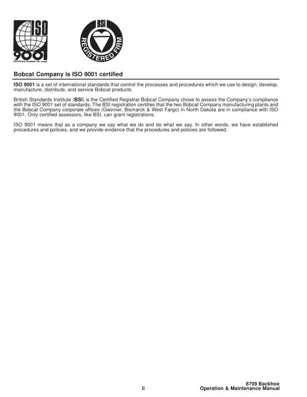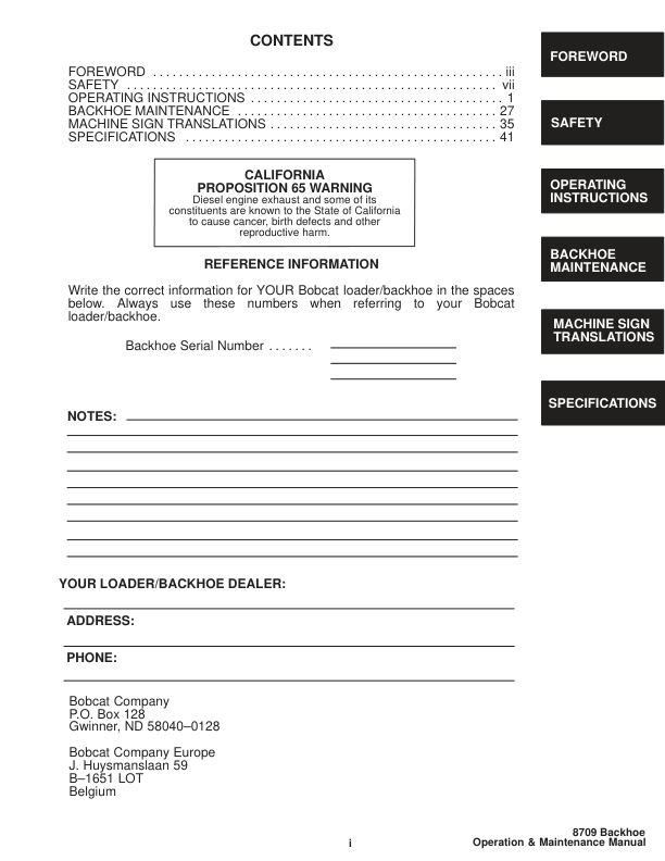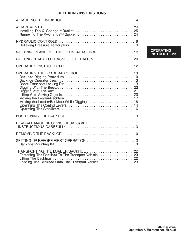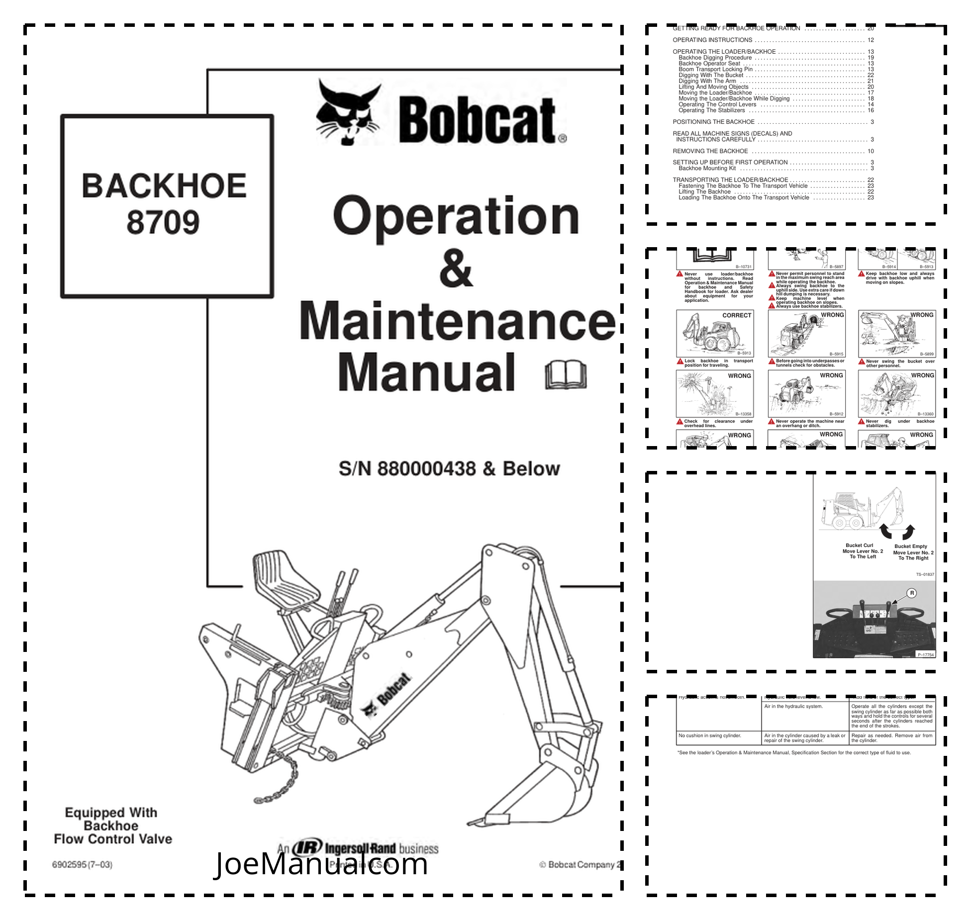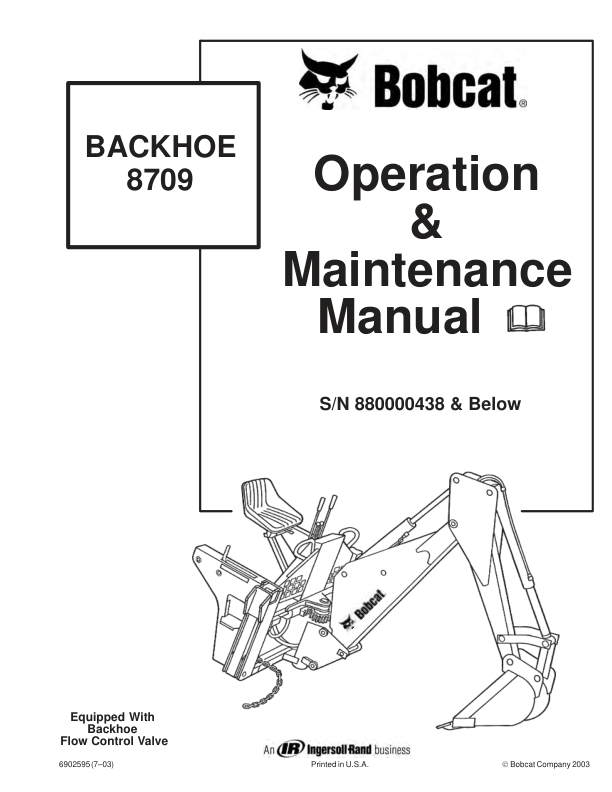 Bobcat 8709 Backhoe Operation and Maintenance Manual 880000438 and Below