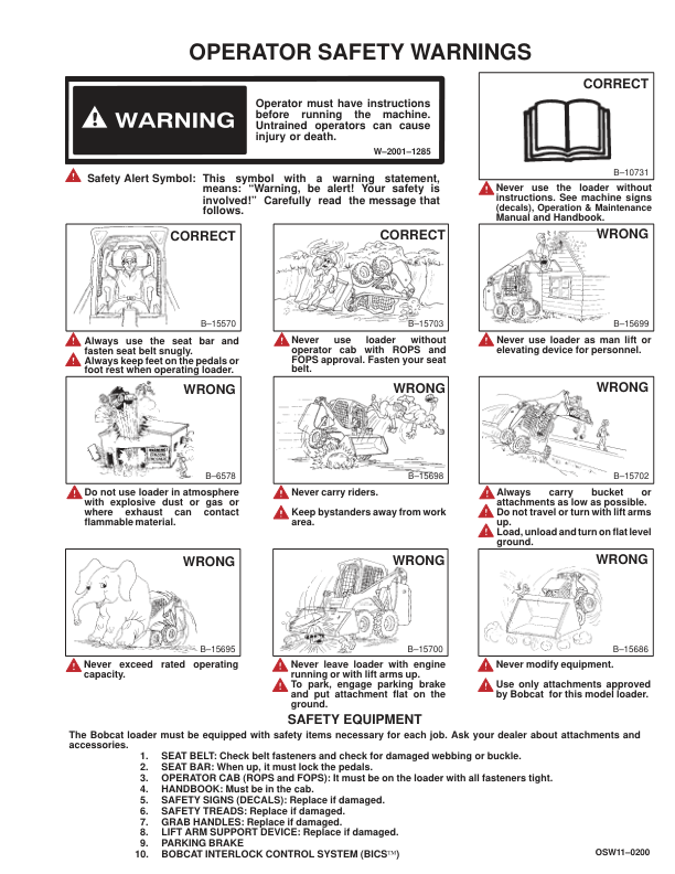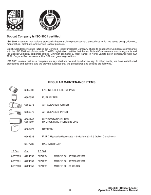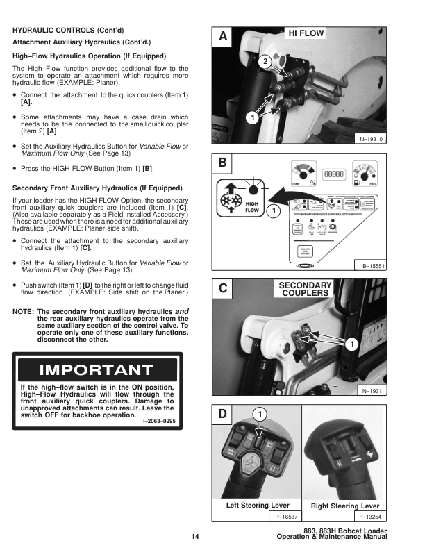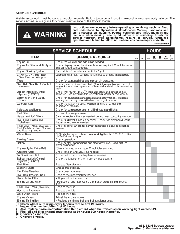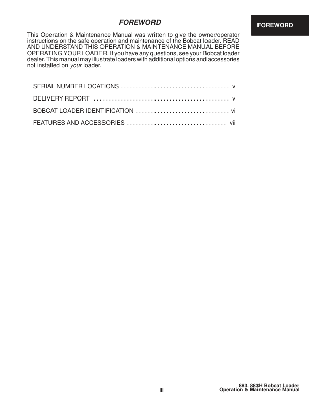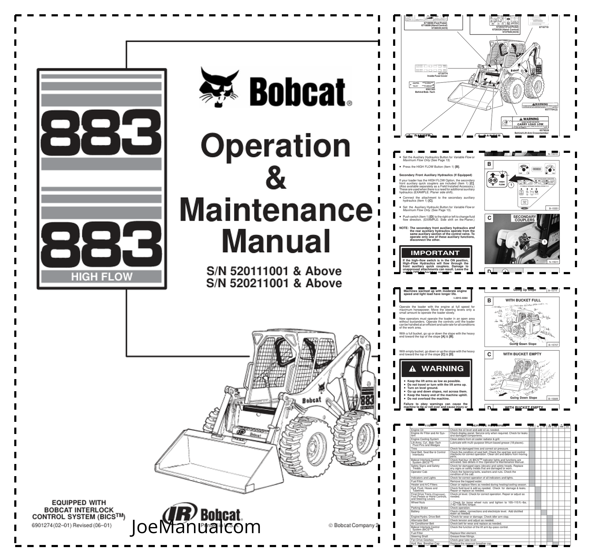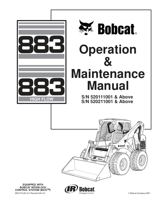 Bobcat 883 HF Skidsteer Loader Operation and Maintenance Manual 5201 5202