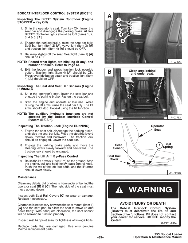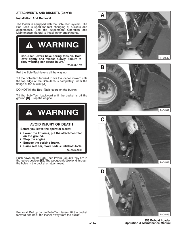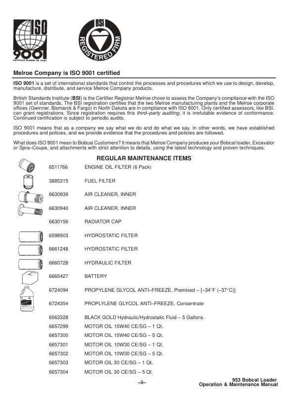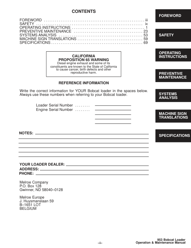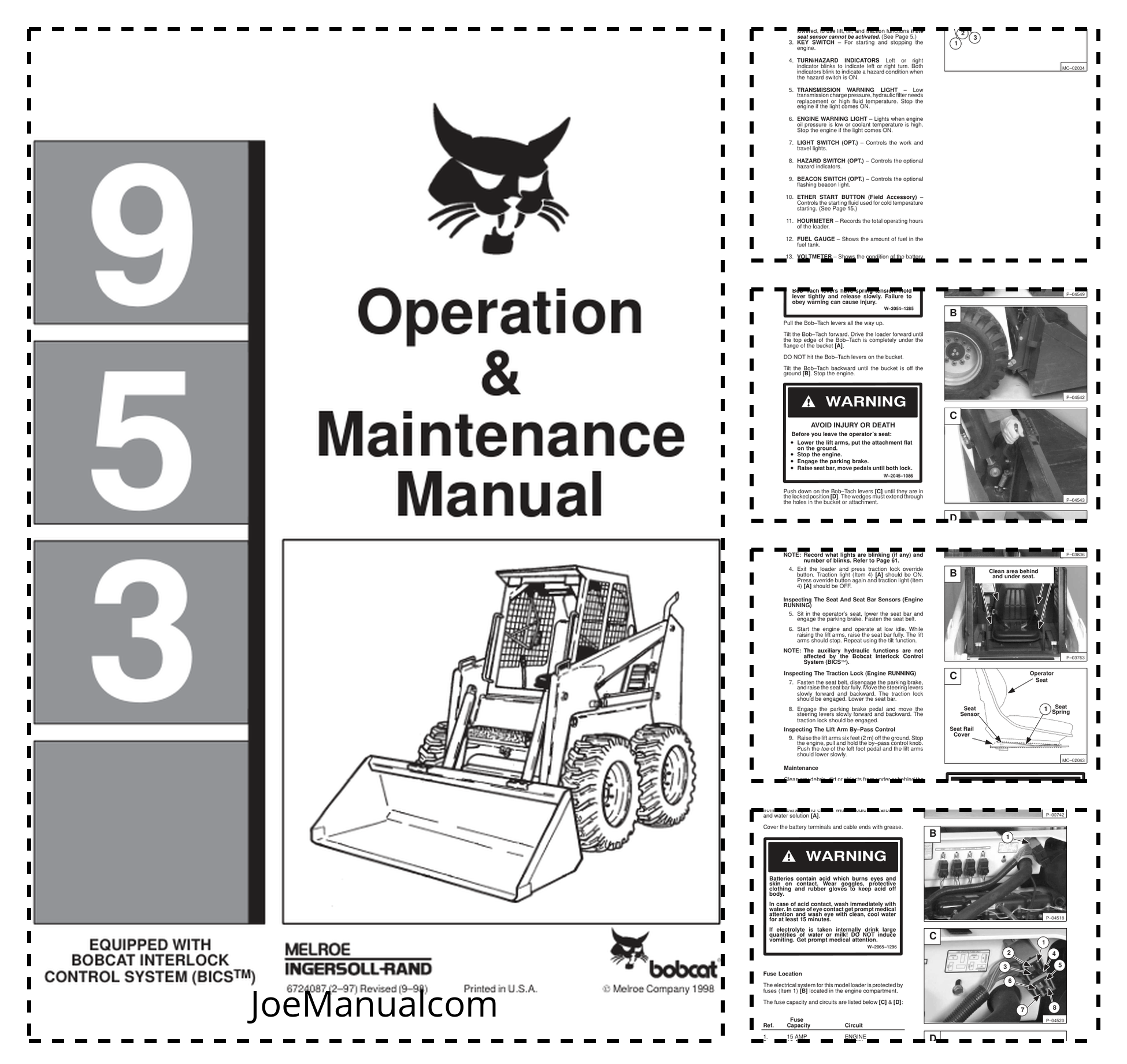 Bobcat 953 Skidsteer Loader Operation and Maintenance Manual