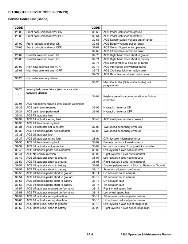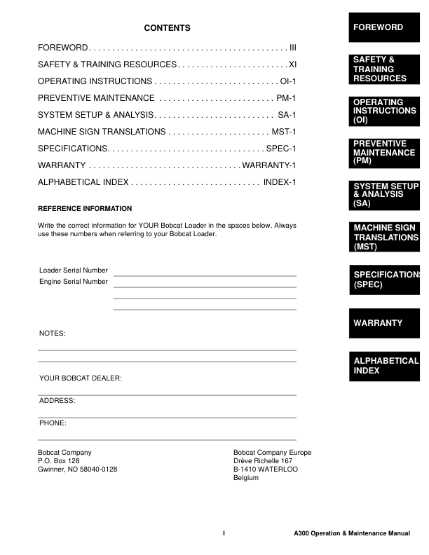 Bobcat A300 Skidsteer Loader Operation and Maintenance Manual A5GW19999 A5GY19999