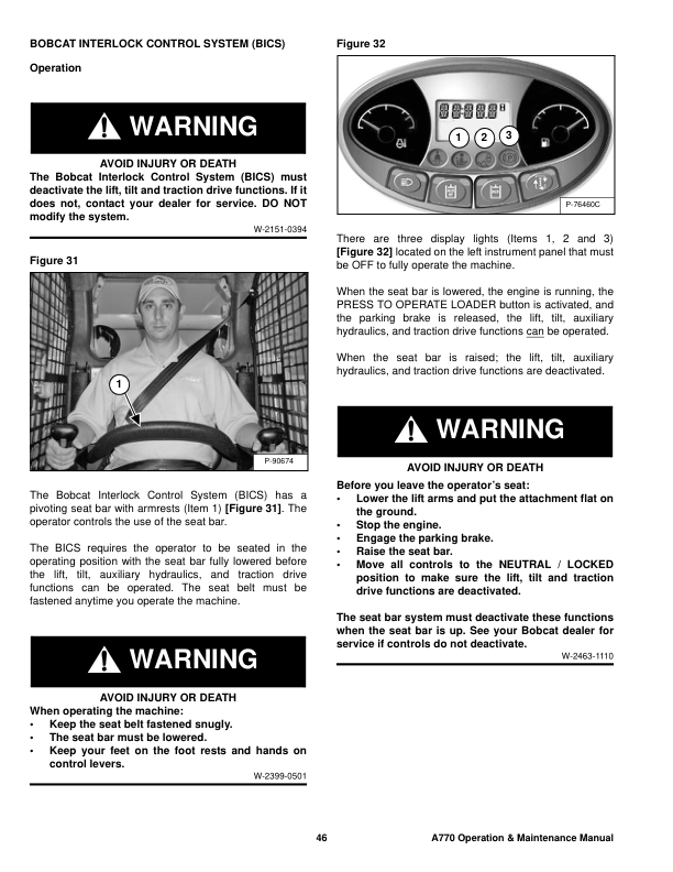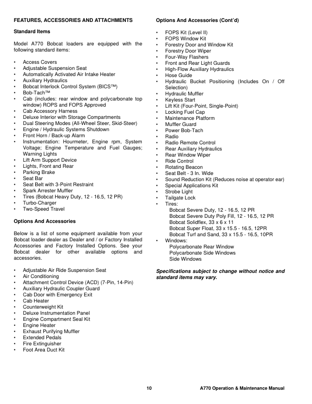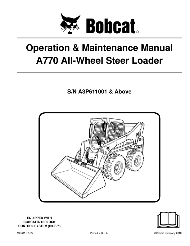 Bobcat A770 Skidsteer Loader Operation and Maintenance Manual A3P6 2010
