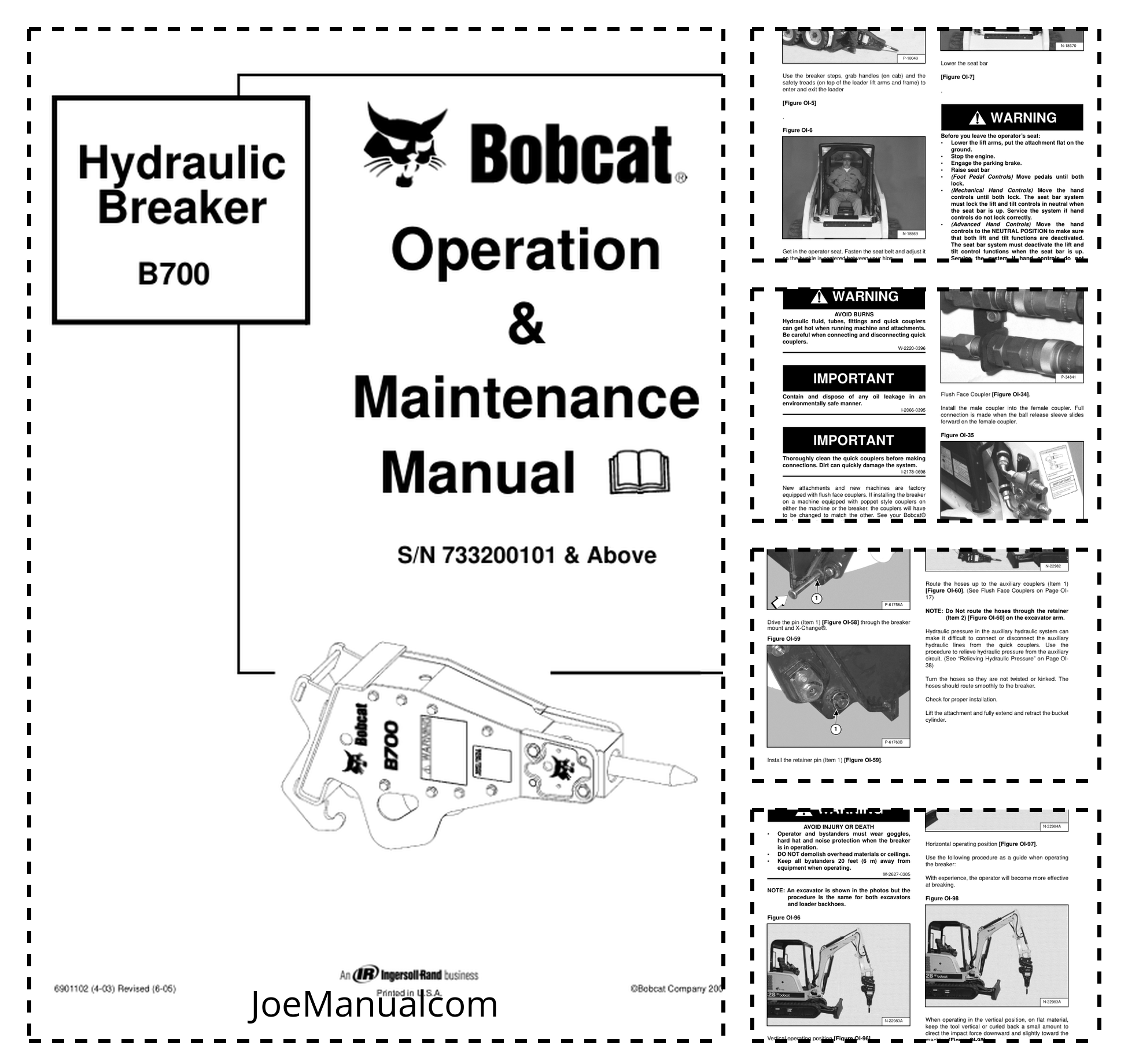 Bobcat B700 Hydraulic Breaker Operation and Maintenance This comprehensive guide provides essential information for operating and maintaining the Bobcat B700 Hydraulic Breaker, a powerful tool designed for heavy-duty demolition and breaking tasks. It covers key aspects such as proper setup, safe operation procedures, routine inspection points, and maintenance schedules to ensure optimal performance and longevity. The manual emphasizes the importance of following manufacturer specifications, including hydraulic system checks, wear part replacement, and lubrication protocols. It also includes troubleshooting tips and best practices for extending the life of the equipment, making it an invaluable resource for operators and maintenance personnel. By adhering to the recommended maintenance routines, users can maximize efficiency, minimize downtime, and maintain the breaker’s reliability in demanding applications. The guide is structured to support both new and experienced users in understanding the critical steps required to keep the Bobcat B700 Hydraulic Breaker functioning at peak capacity.