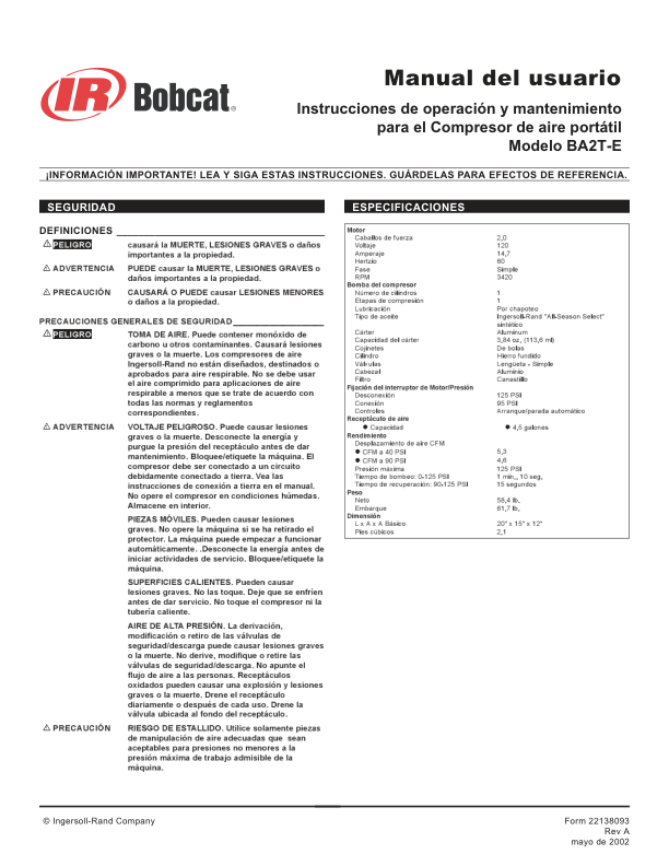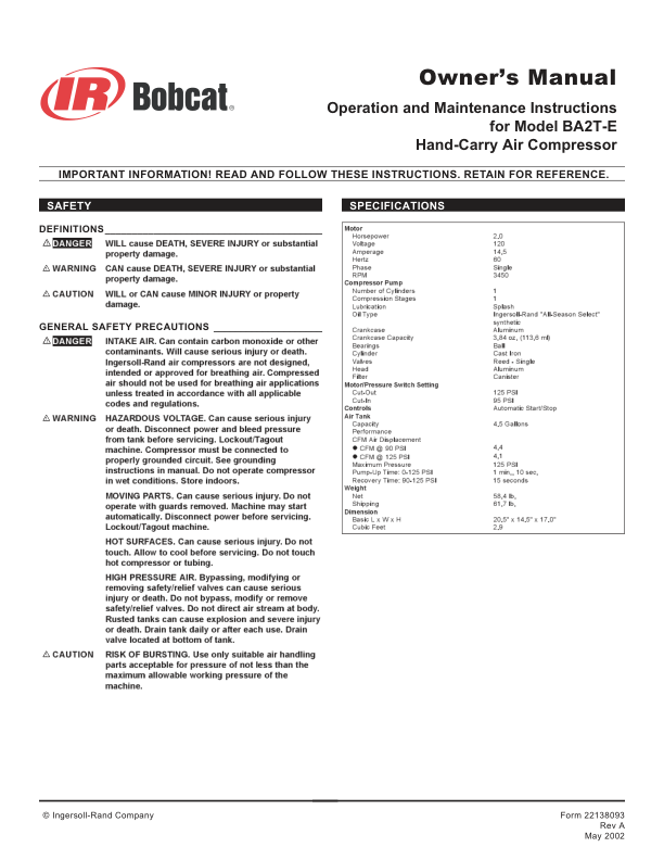 Bobcat BA2 TE Air Compressor Operators Manual 2213 The Bobcat BA2 TE Air Compressor Operators Manual 2213 is a comprehensive guide designed to provide users with detailed instructions for operating, maintaining, and troubleshooting the Bobcat BA2 TE air compressor. This manual includes essential information on safety procedures, technical specifications, system components, and step-by-step operational guidance to ensure efficient and safe use of the equipment. It also covers maintenance schedules, diagnostic checks, and repair techniques to help operators keep the unit in optimal working condition. The document serves as a valuable resource for both new and experienced users, offering clarity on daily tasks and long-term care to maximize performance and longevity. By following the guidelines outlined in this manual, operators can enhance productivity, minimize downtime, and ensure compliance with industry standards.
