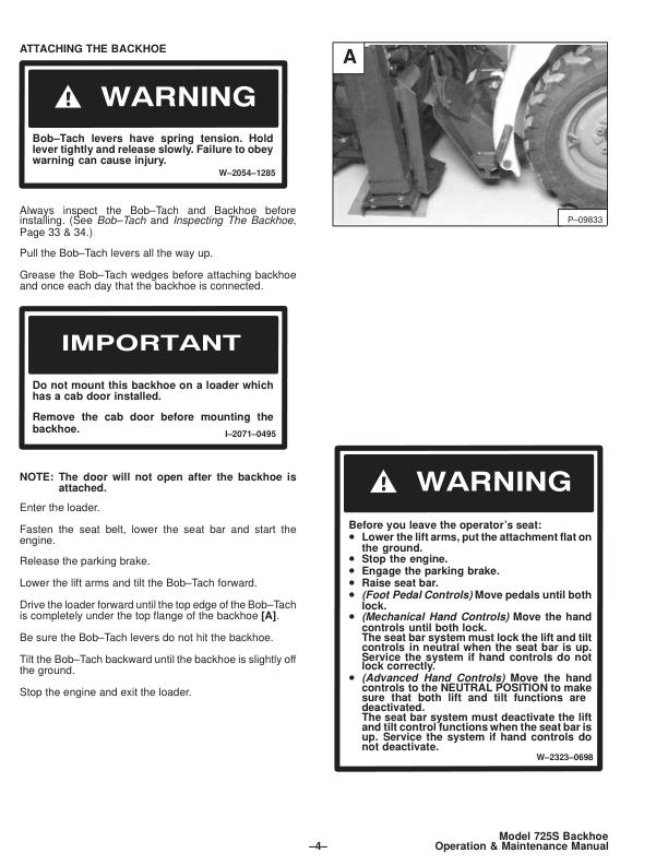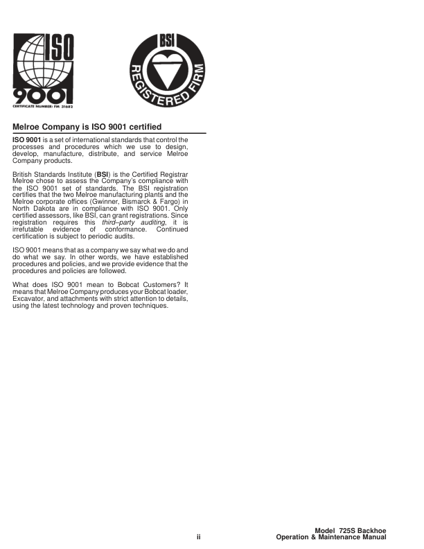 Bobcat Backhoe 725S Operators Manual