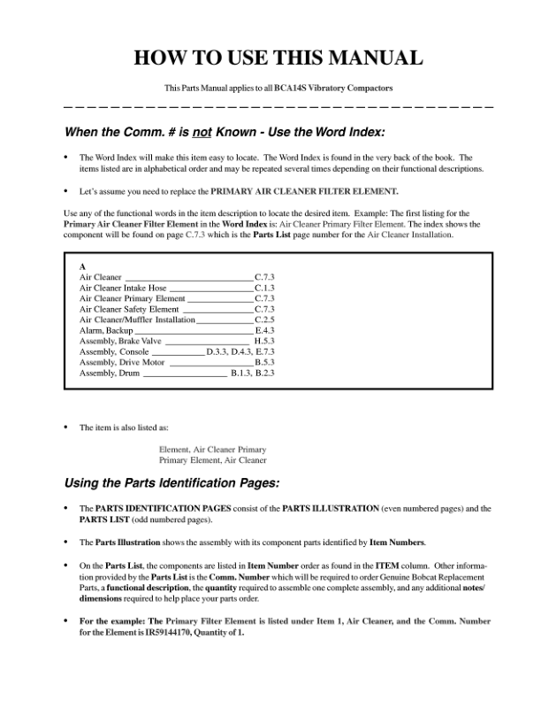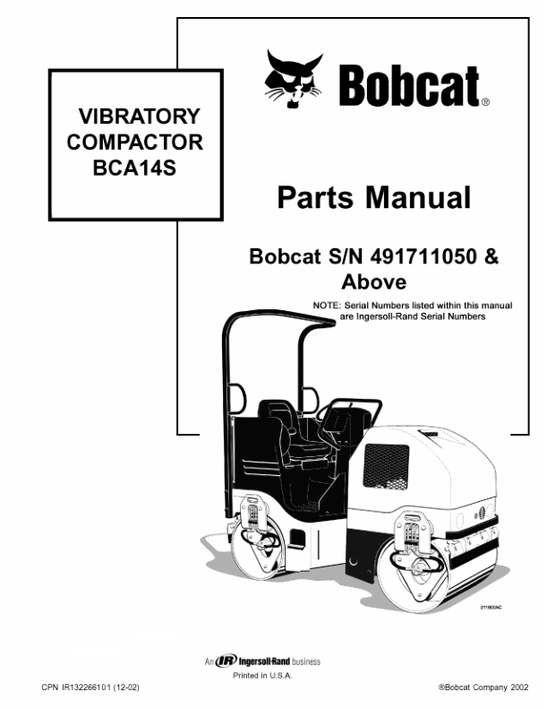 Bobcat BCA14S Vibratory Compactor Parts Manual